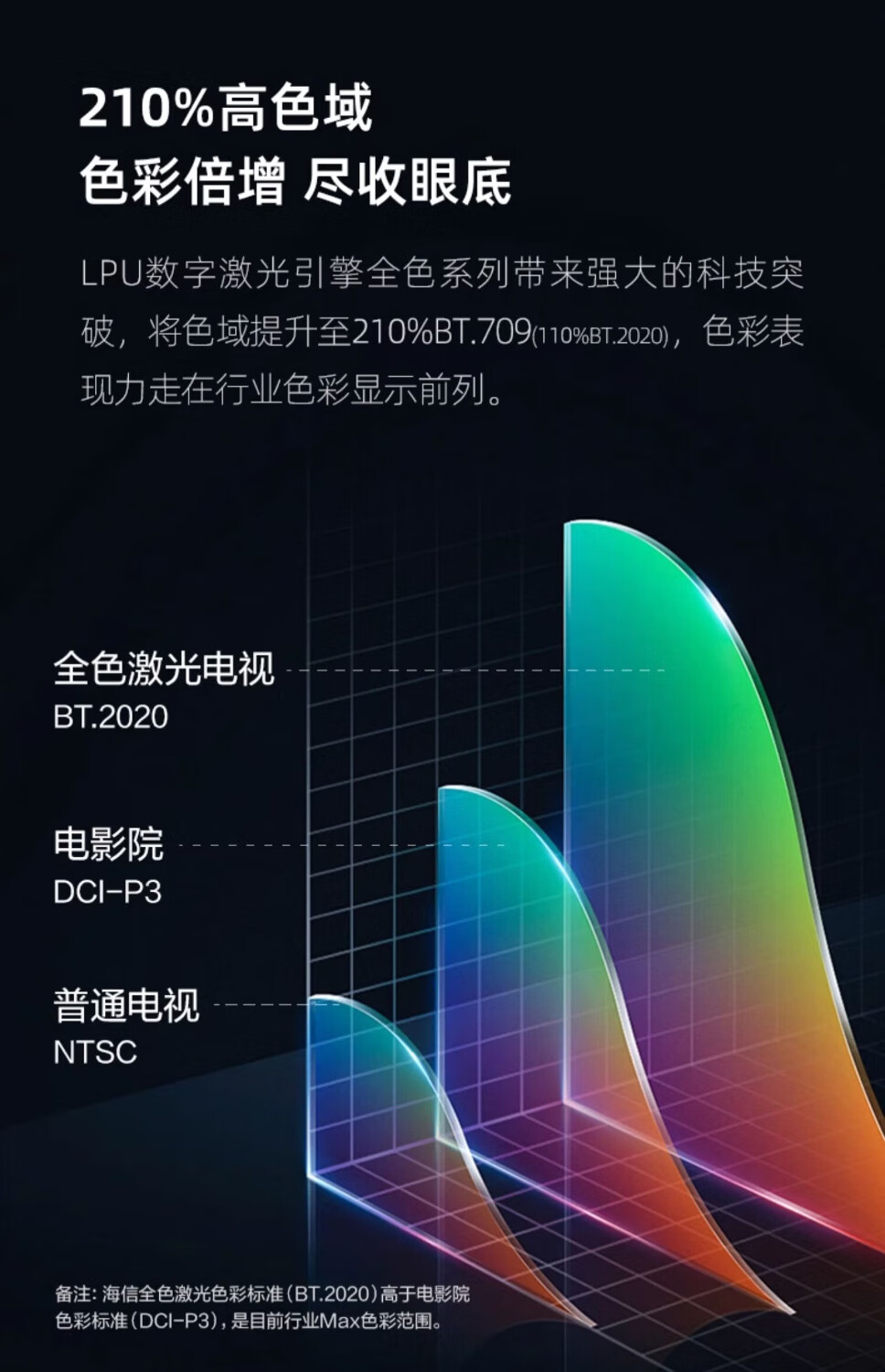 色彩鲜艳夺目,音质很不错,像看电影院效果,使用快1个多月了,家里人都非常满意 海信比邻居的峰米好 他的很暗 晚上噪音很大