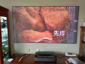 本来预定了极米A3,迟迟不发货,改选了海信,效果出乎意料的不错,硬屏装上后色彩饱和度也很高,音效也不错,最主要的是发货快!李总人回复也很快,购物体验不错!唯一后悔的就是屏幕选择的小了 应该买100寸 过两年再换屏幕吧