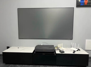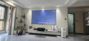 店里看了88寸要两万多,~跟客服联系后还是很靠谱的刚到货就迫不及待的安上了,一百寸的大屏幕,看起来真好,画面很清晰,安装调试也很简单,真的是过瘾啊!
