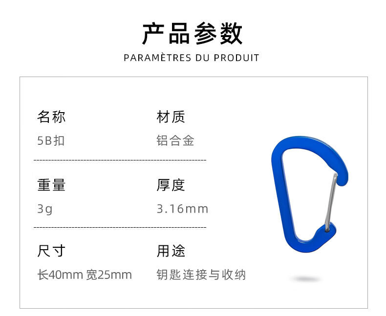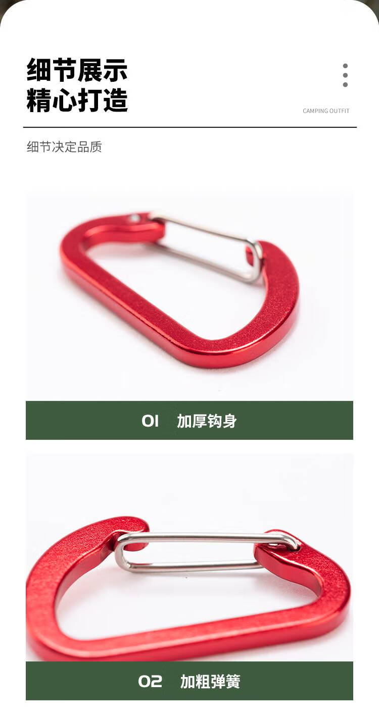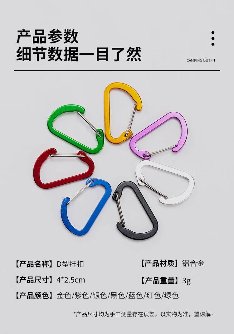 ZKHE户外登山扣D字快挂铝合金钥匙扣环铝合金型天幕帐篷露营背包挂钩 金色