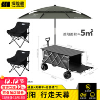 探险者露营车户外聚拢推车大容量快递车野餐车摆摊营地车便携野营旅行车 耀夜黑【后开越野款+桌板+椅+天幕伞】
