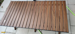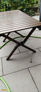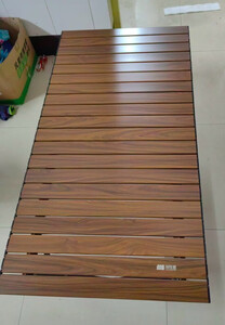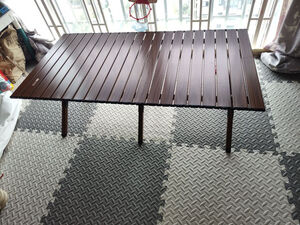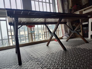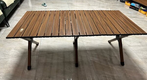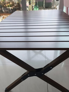 做工还不错,双面的铝材,桌板间隔也合适,不会过大,四个人没问题,六个人要特别挤一下了 桌脚也挺稳的,不太会摇晃,附有收纳袋带出方便,价格估计有点还高了点