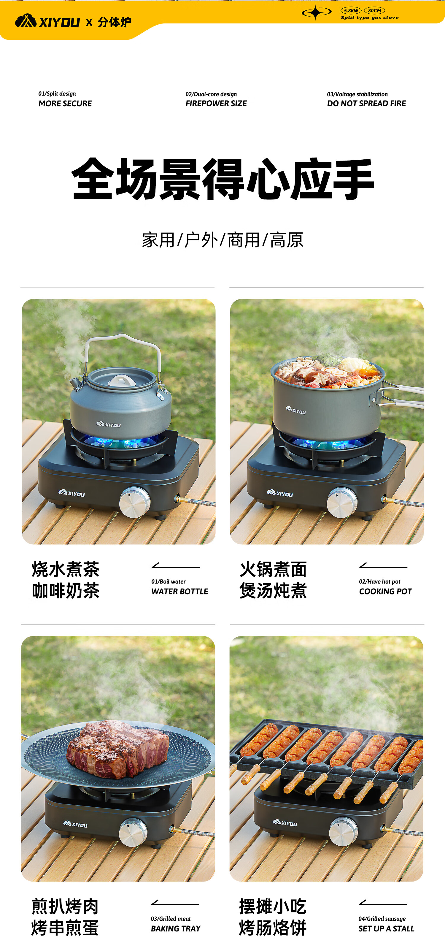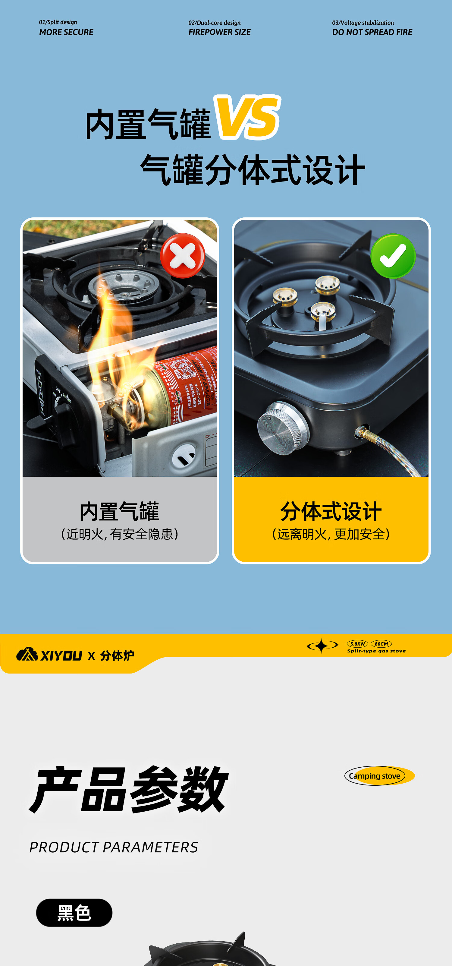 嘻由分体式卡式炉锅具三件套卡磁炉厨房套装全套带锅户外露营全套装备 分体炉+30L收纳包+316烤盘 【液态灰3+1稳压分体炉】