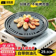 探险者烤盘分离式烤肉盘圆形碳烤盘户外卡式炉烤盘家用不粘韩式烧烤盘 分离式带水圈【起盘器+收纳袋】