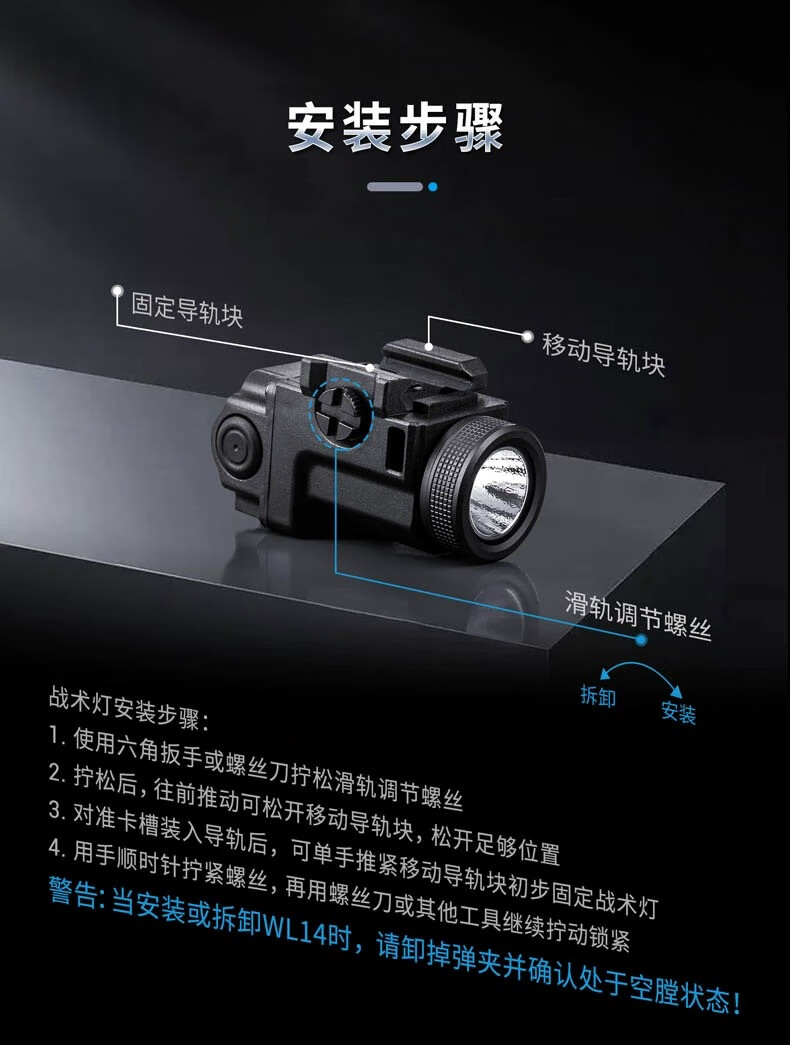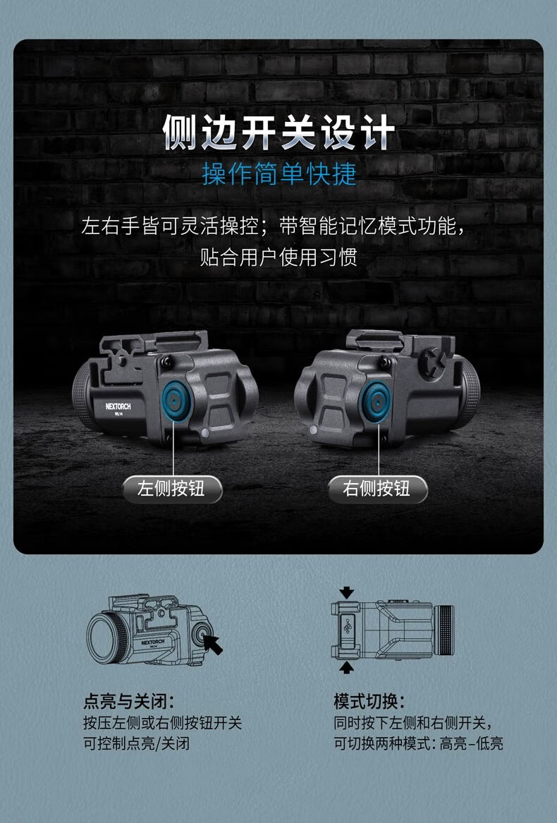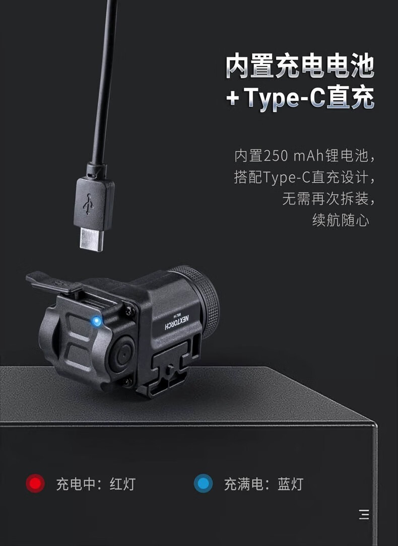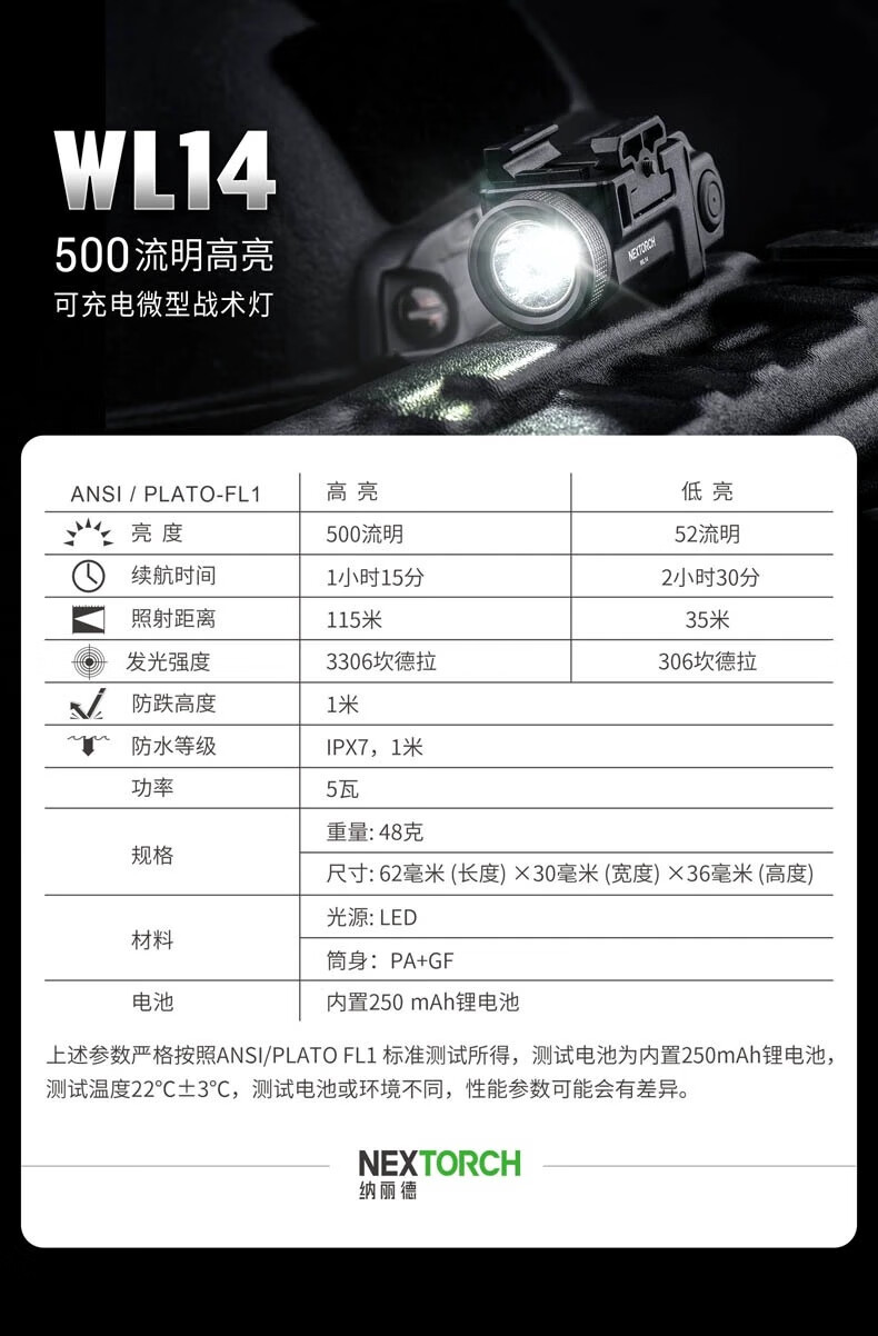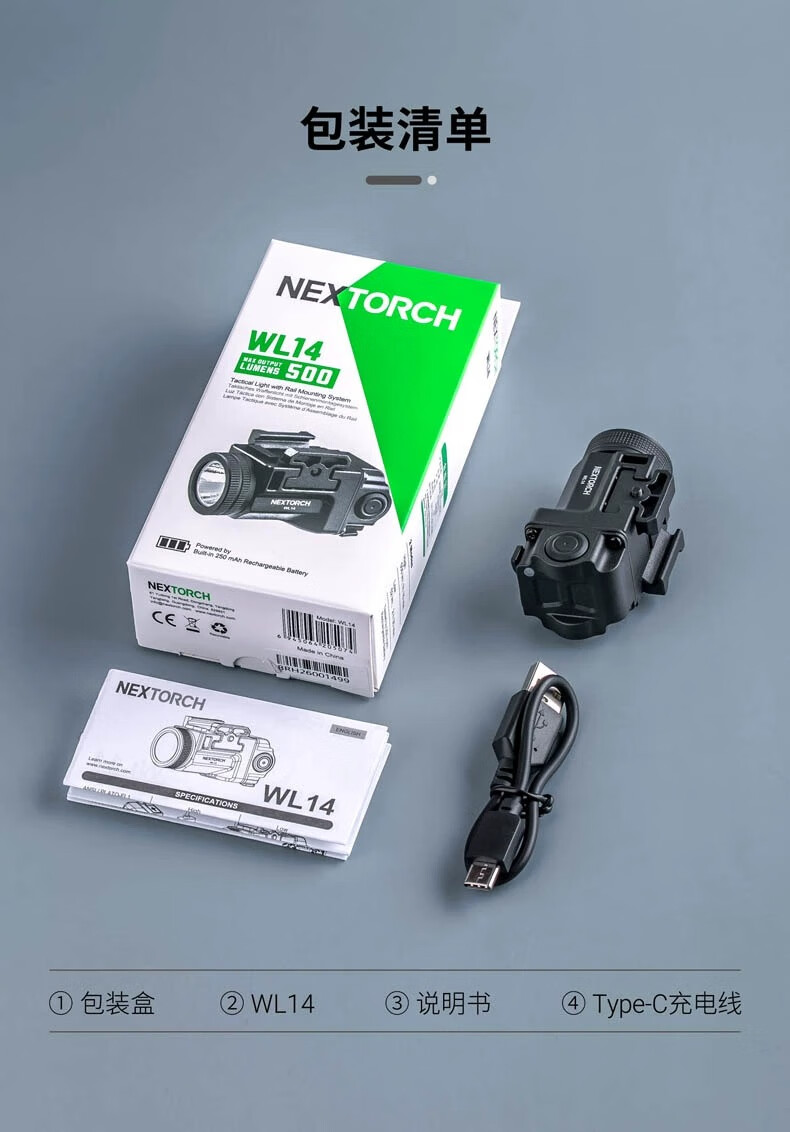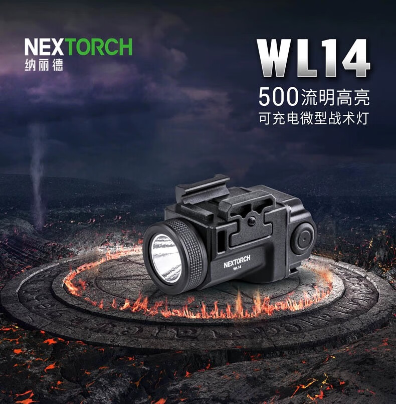 纳丽德WL14下挂灯可充电小型战术灯500流明高亮便携灯 WL14
