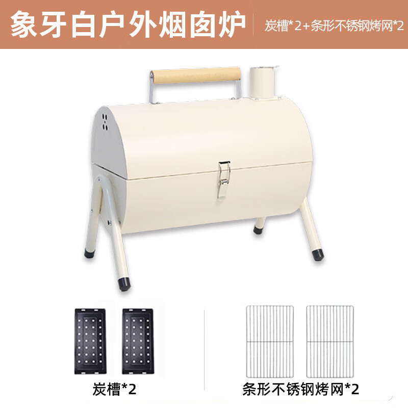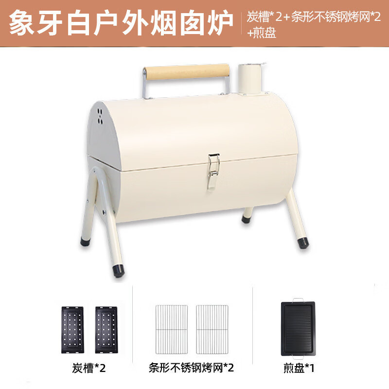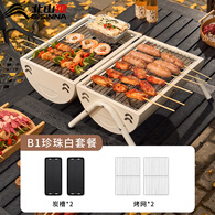 北山狼 双面煎烤两用圆形户外烧烤炉家用庭院碳烤炉露营烧烤架 珍珠白B1-烤网+碳槽*2