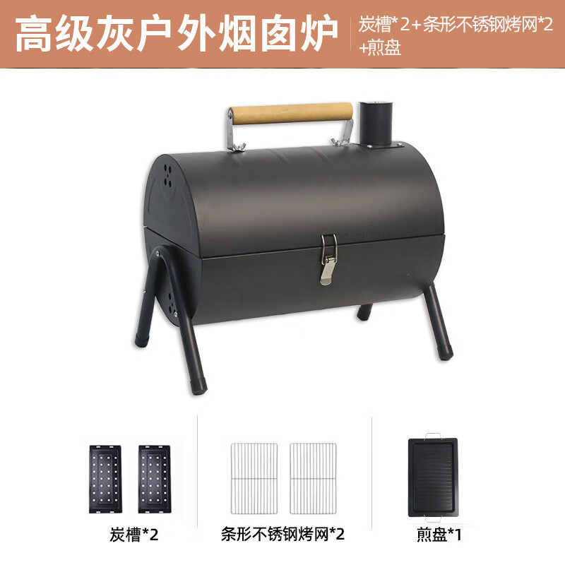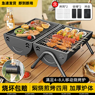 户外野餐烧烤炉便携式煎烤两用烤盘户外露营无烟木炭烧烤架 黑色加烤盘