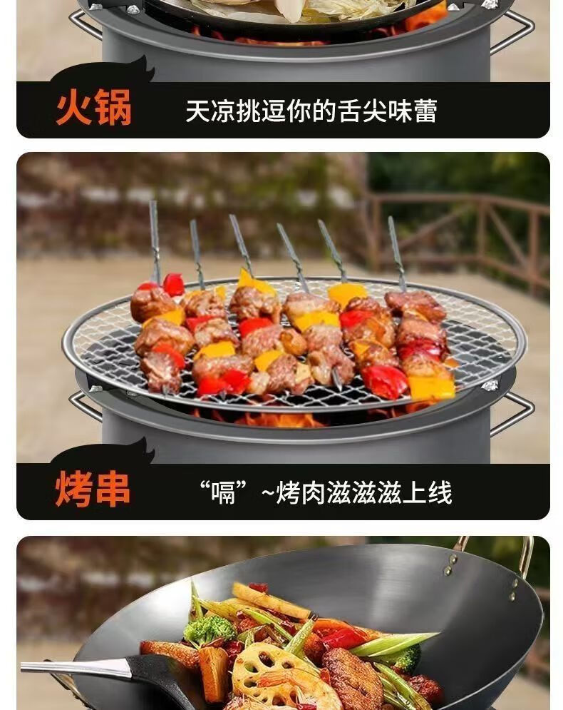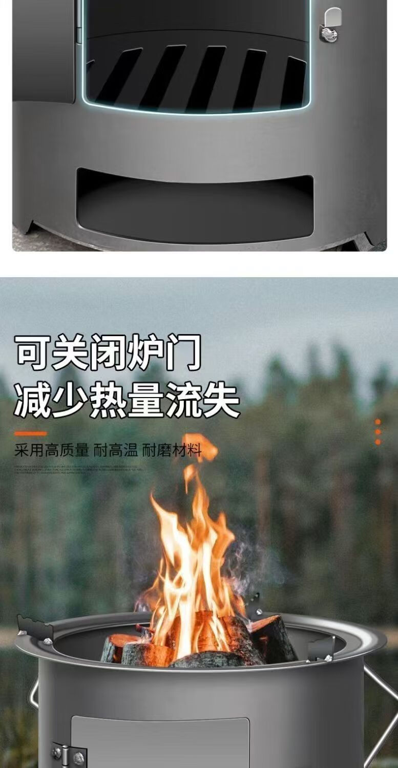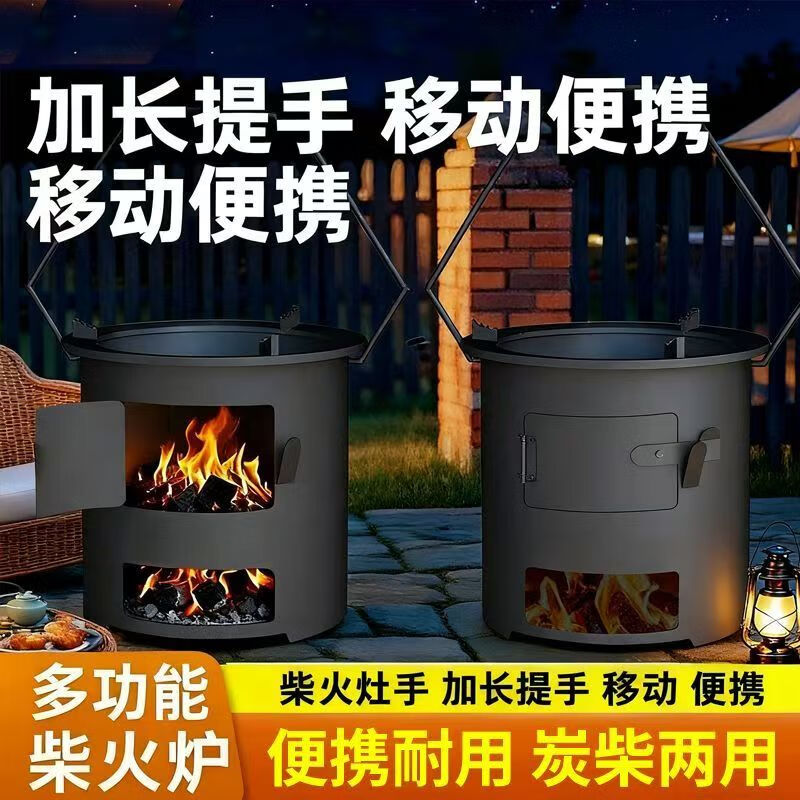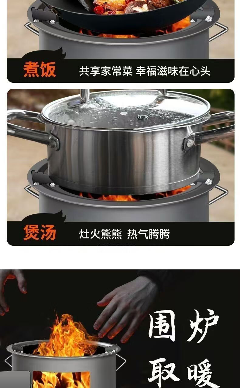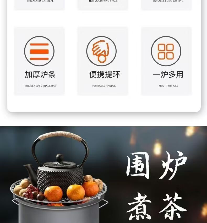 玮贤加厚柴火炉便携式围炉煮茶炉木炭取暖烧烤户外多功能野炊烧柴灶台 (中号)25宽*24高