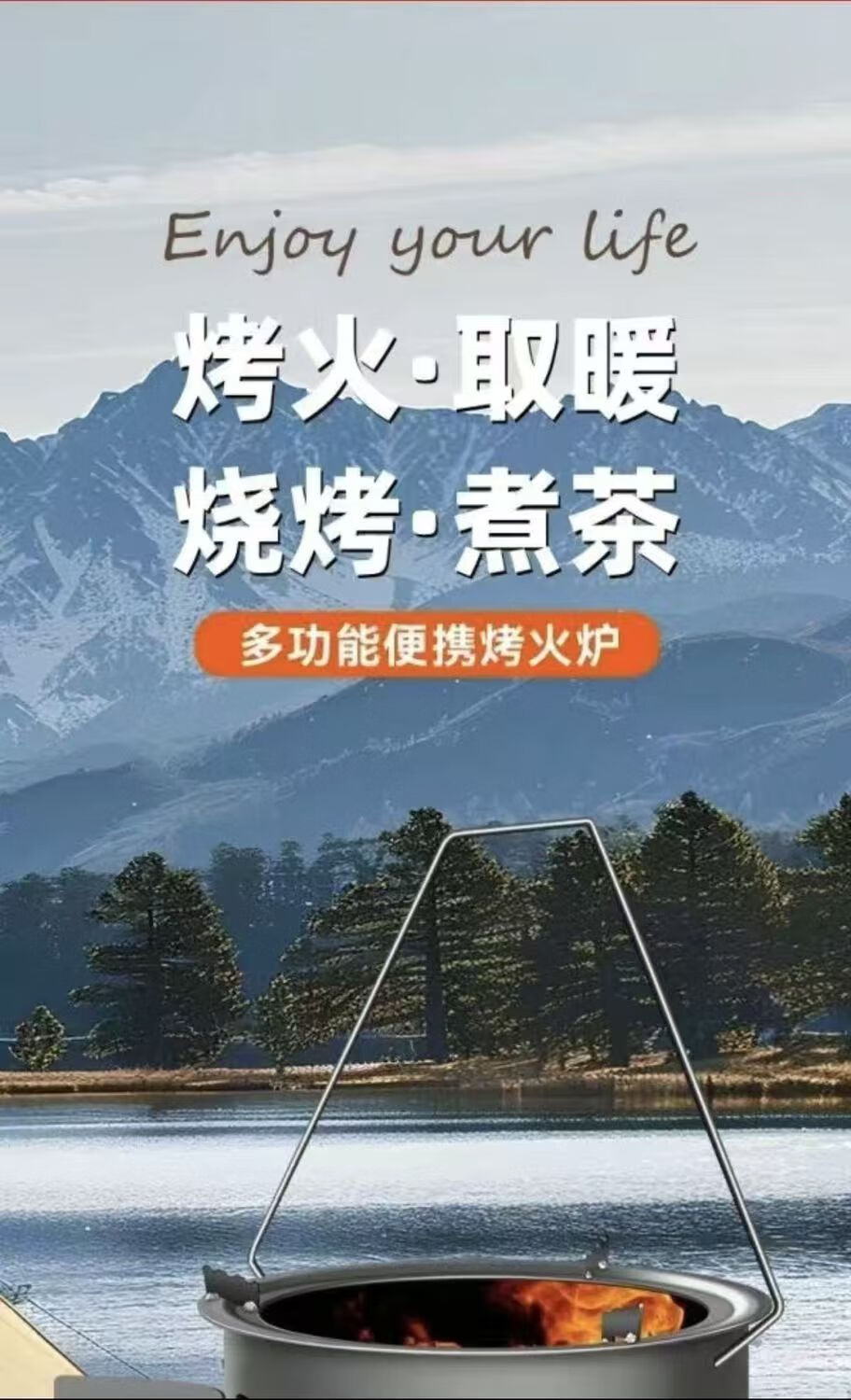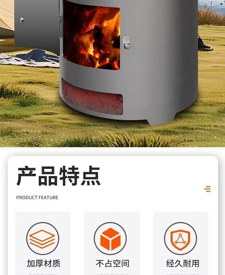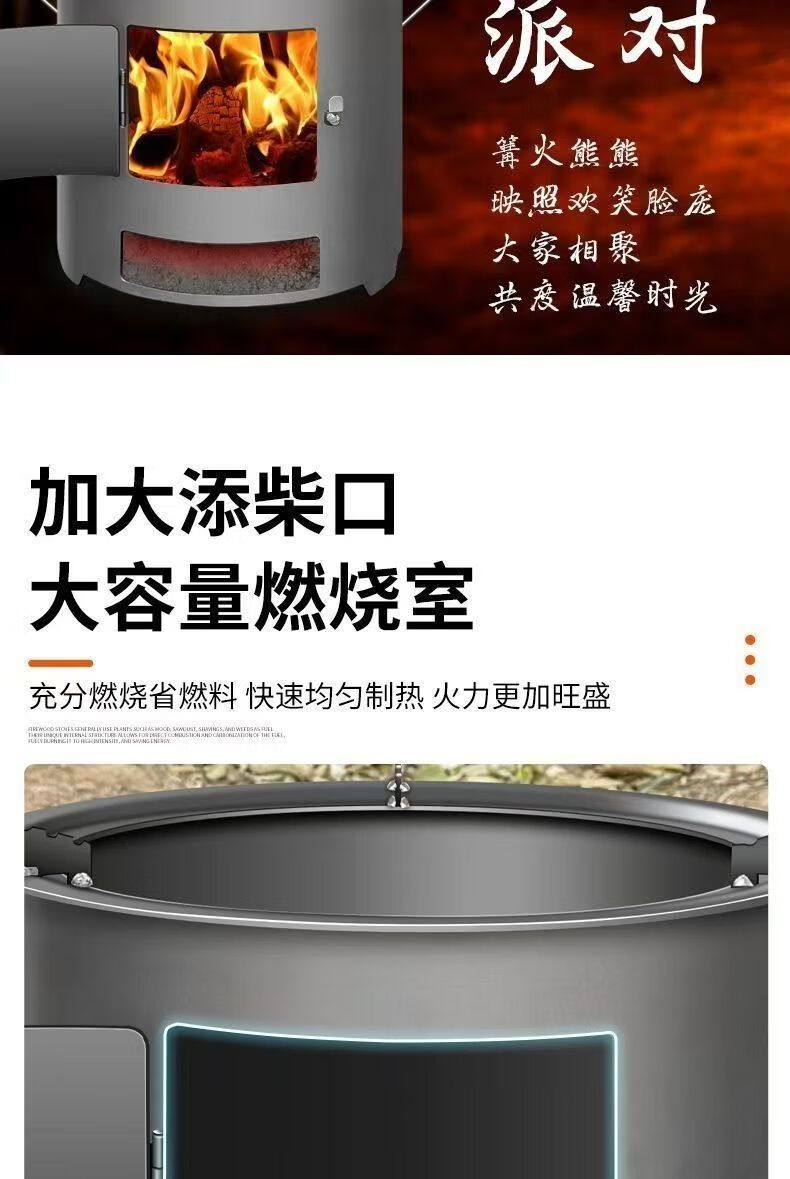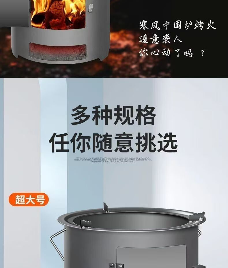 玮贤加厚柴火炉便携式围炉煮茶炉木炭取暖烧烤户外多功能野炊烧柴灶台 (中号)25宽*24高
