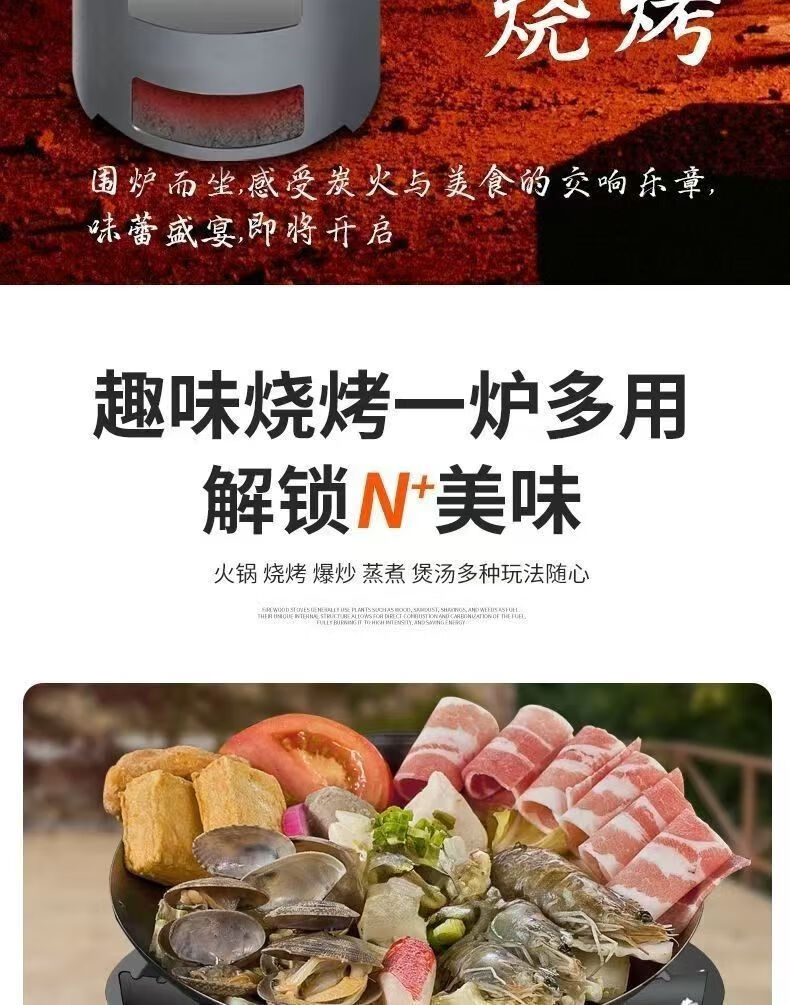 多功能家用无烟钢板烤箱取暖炉烧水做饭柴煤两用火炉灶二次燃烧 H-68-长68宽48