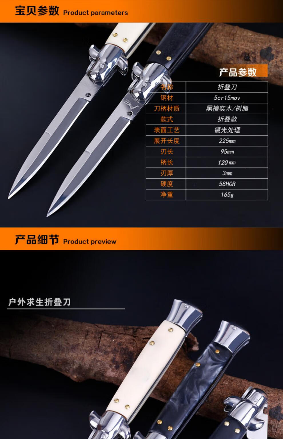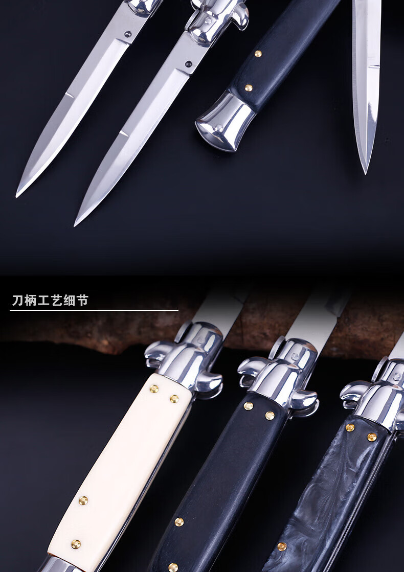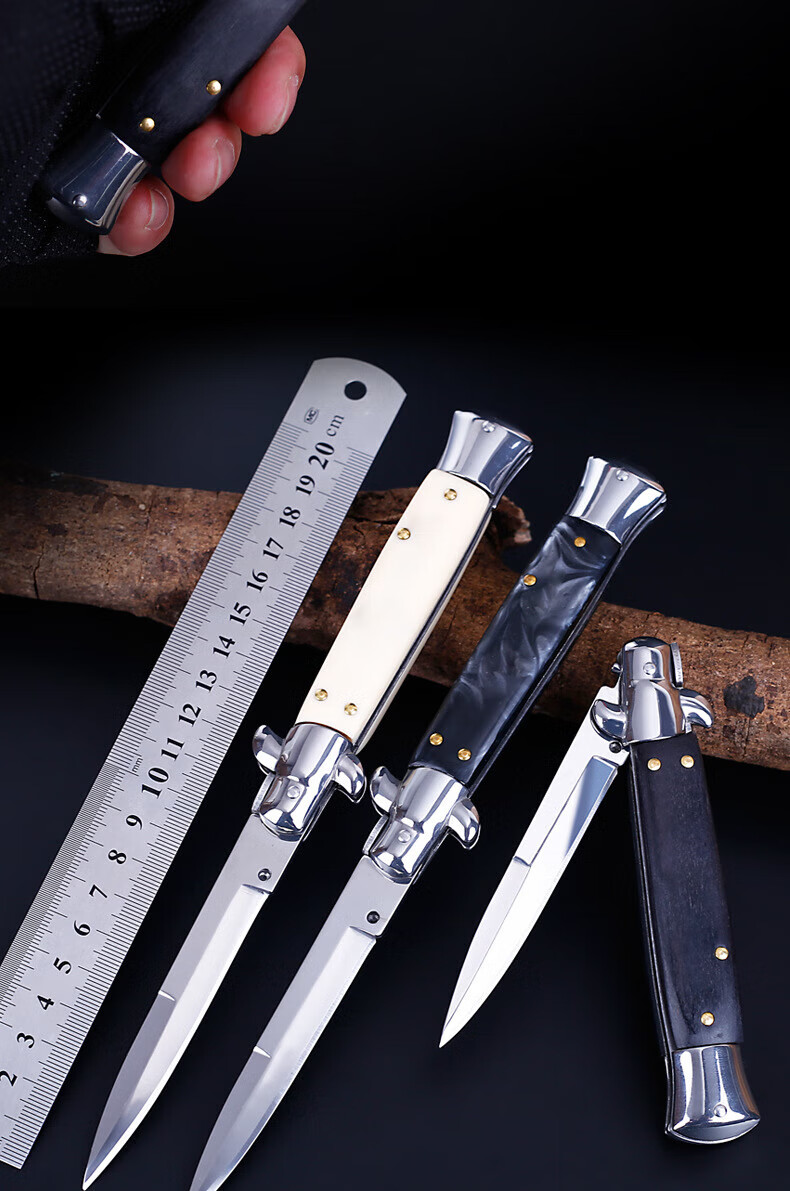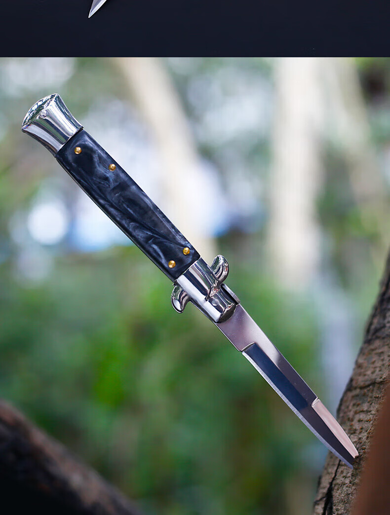 意大利黑手党便携户外防身高硬度小刀野外求生快开刀具60 深灰色9点5cm