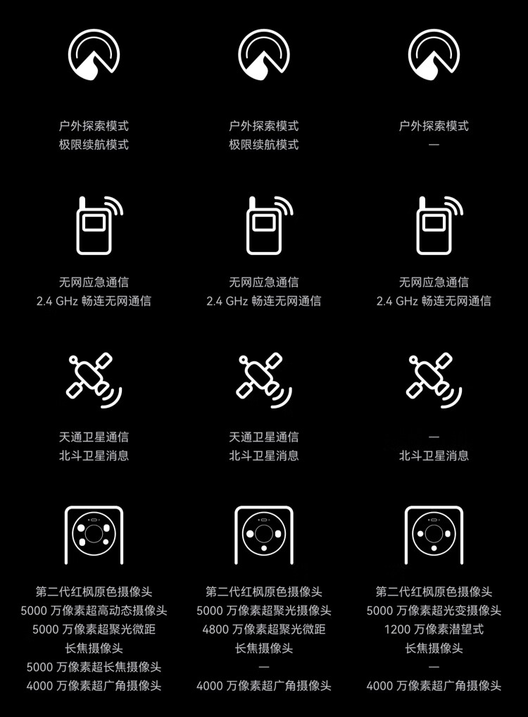AI大模型,LTPO屏幕,高频PWM调光,全焦段影像,潜望式长焦,防水防尘,无线充电,NFC,红外遥控,大底主摄