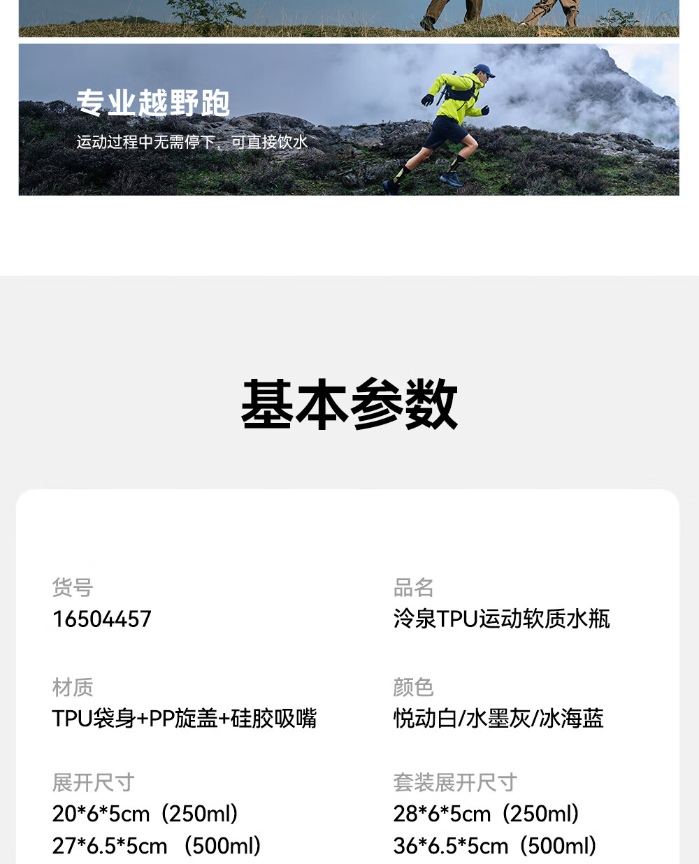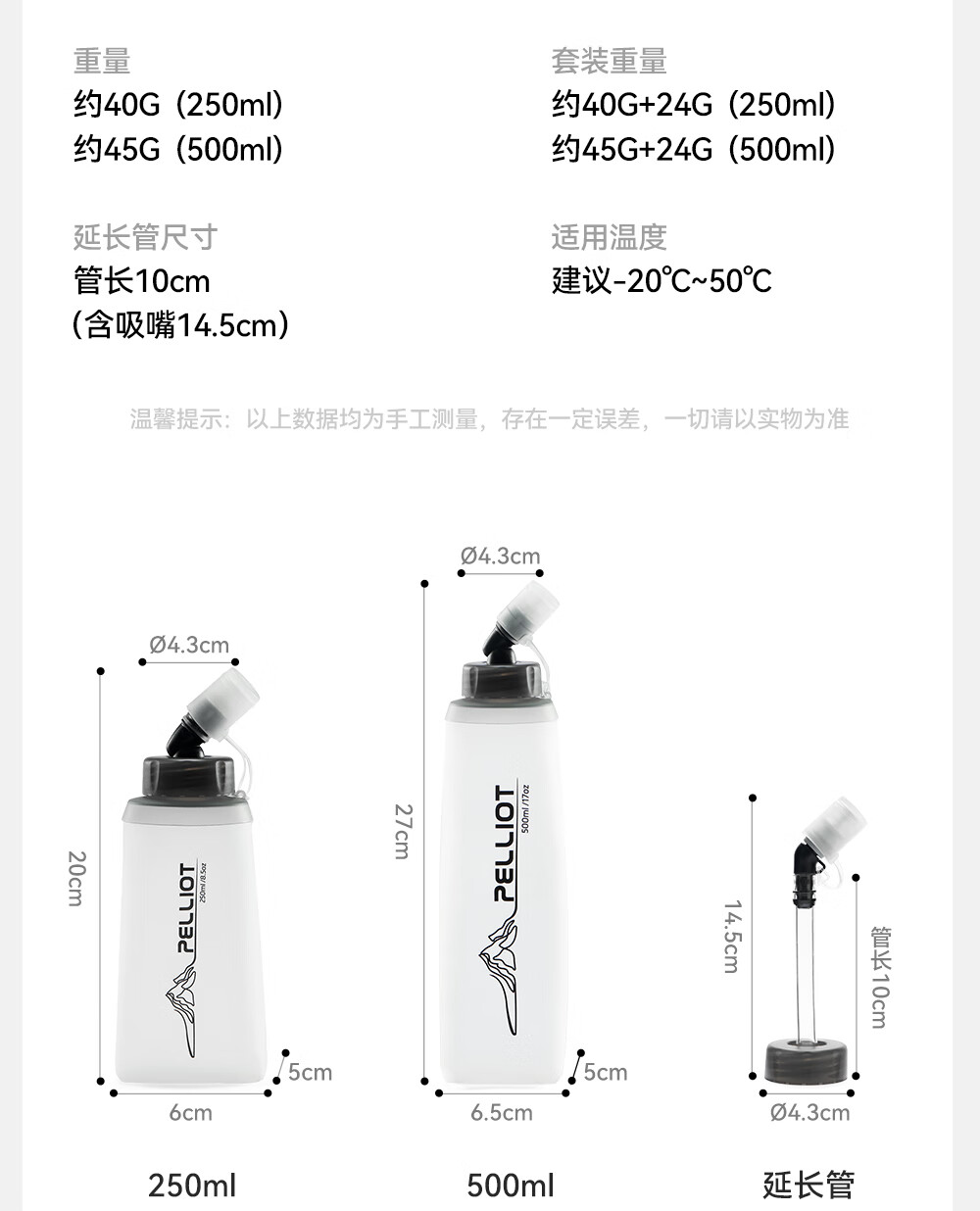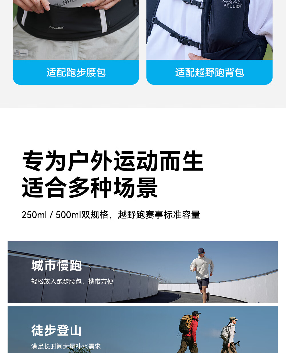 伯希和(Pelliot)【泠泉】户外软水壶折叠登山越野跑骑行运动跑步爬山水袋野餐爬山 【悦动白】500ML便携折叠