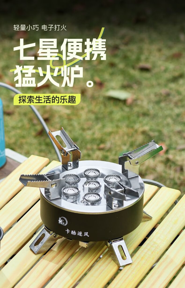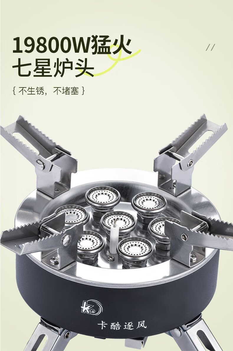 七星炉灶户外便携卡式炉野外炉具露营炊具防风猛火燃气炉子卡酷 卡酷逐风七星炉19800W赠送收纳