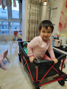首先从外观上非常大气漂亮的一款车型,红颜色也是我和宝宝喜欢的颜色,其次就是这个车的承重力非常大我自己140多斤和宝宝40多斤一起坐上去完全没问题,轮子的静音效果非常好在楼上拉来拉去都没有声音不会影响到楼下邻居休息,刹车也非常安全,非常满意的一次购物,要是价格再能优惠些我认为就更完美了,祝店家生意兴隆