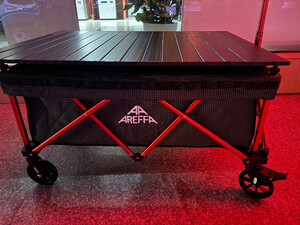 AREFFA露营车铝合金轻量化可折叠承重户外旅行野餐大容量收纳营地手拖车 橄榄绿+面板 150L 有刹车
