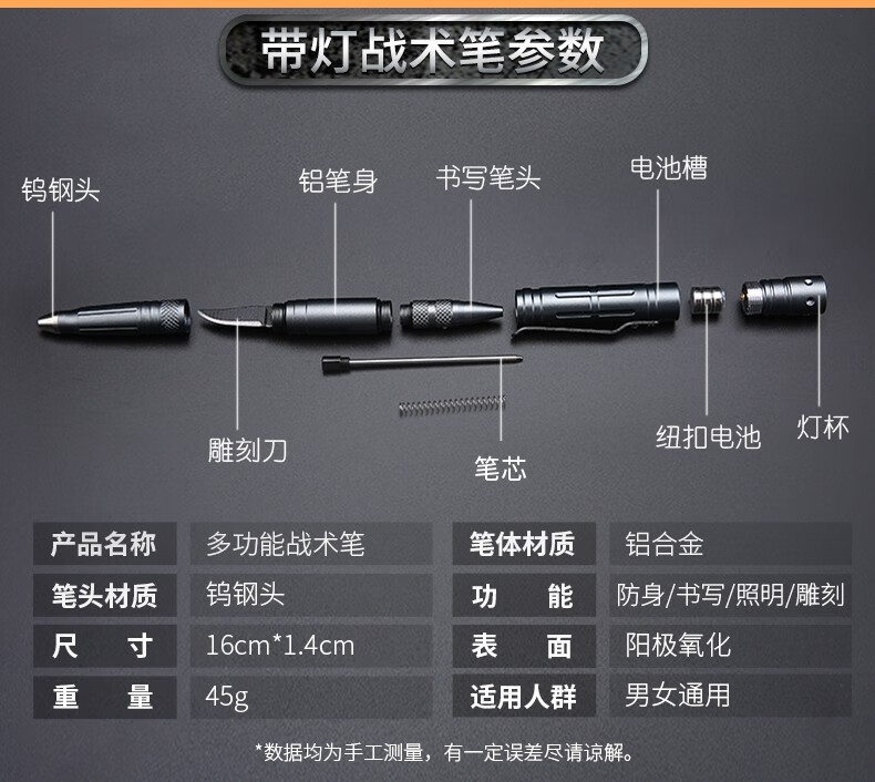浙睿多功能战术笔防身笔钨钢头破窗器女子防狼神器自卫刀野外求生用品 黑色钨钢头 【破窗-防身-照明-书写-切割】