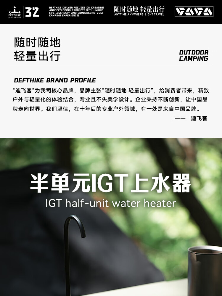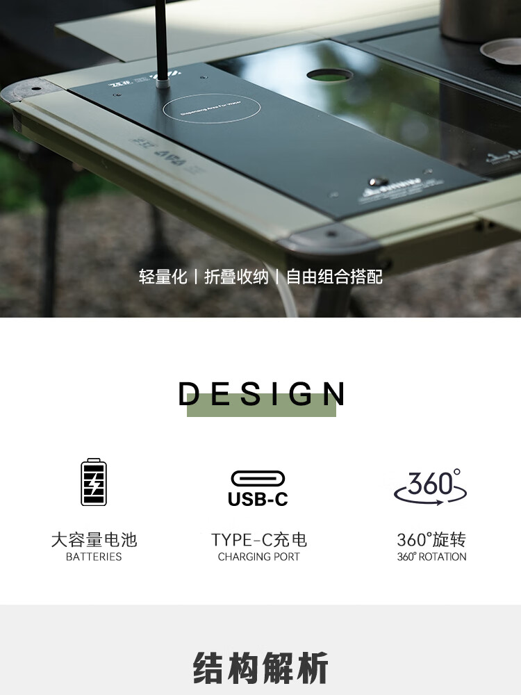 迪飞客 Defthike户外露营野餐茶桌IGT半单元铝合金配件充电上水器 黄色-半单元模块