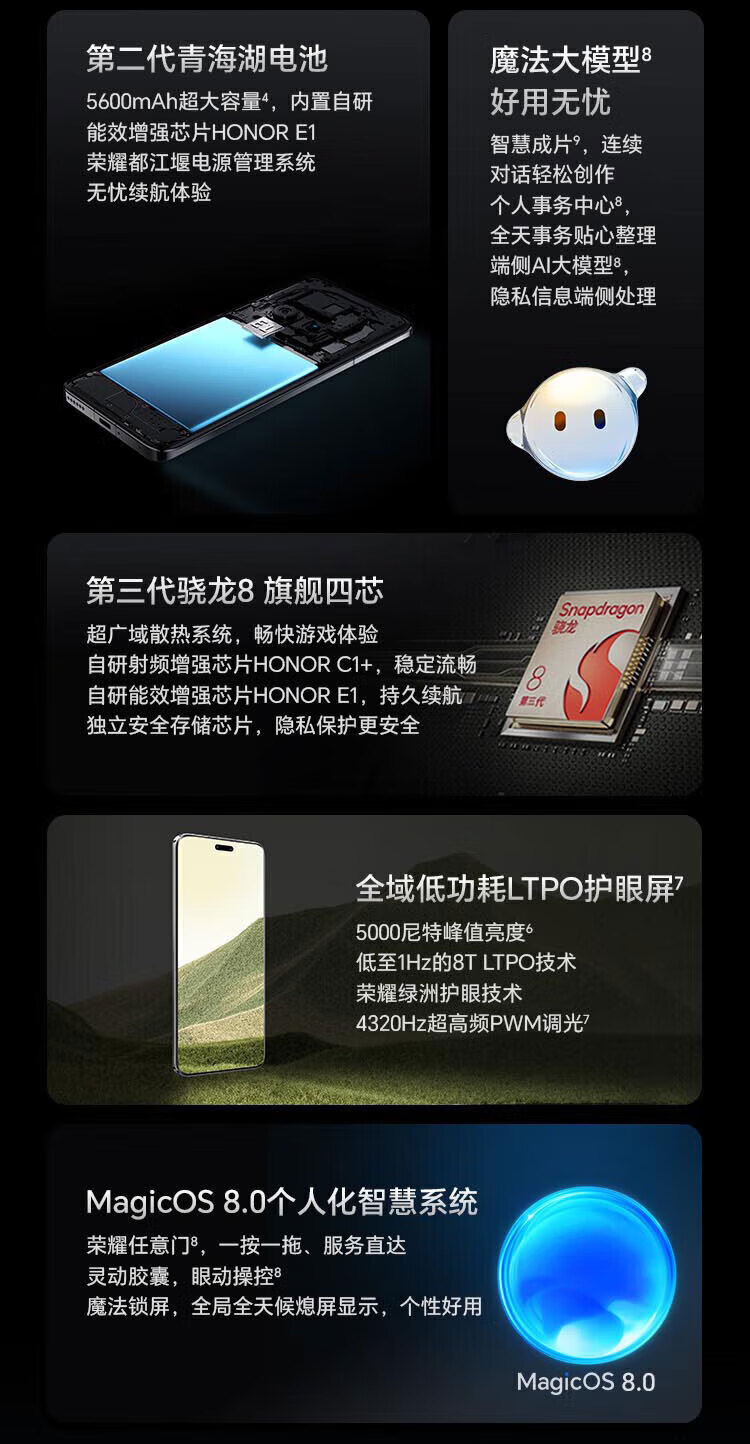 HONORhonor/荣耀 Magic6 Pro旗舰拍照手机影像 旗舰五摄摄像前二后三5000万像素骁龙八核处理器柜展机 绒黑色 12GB+256GB_环保版(无充电器)