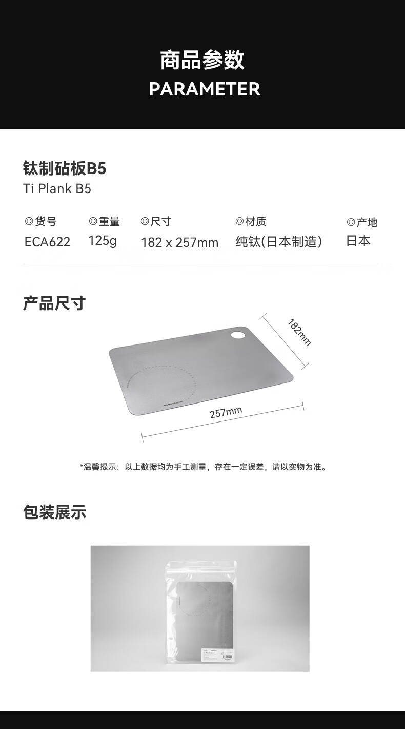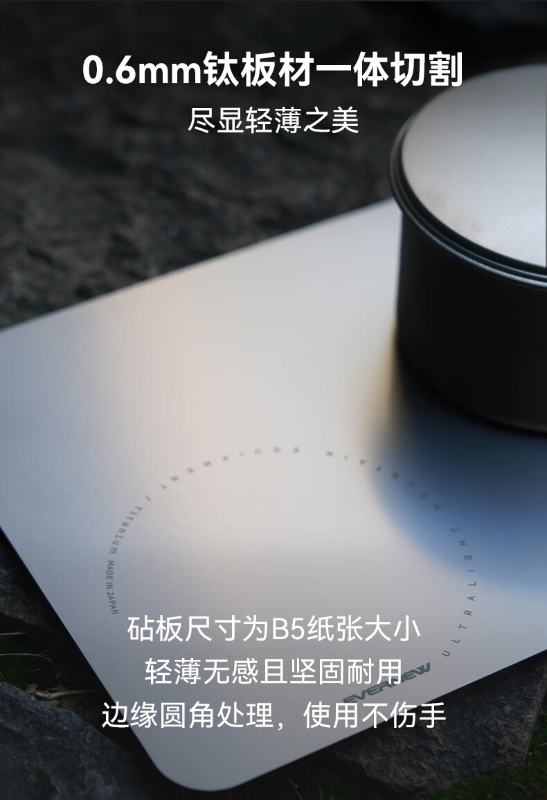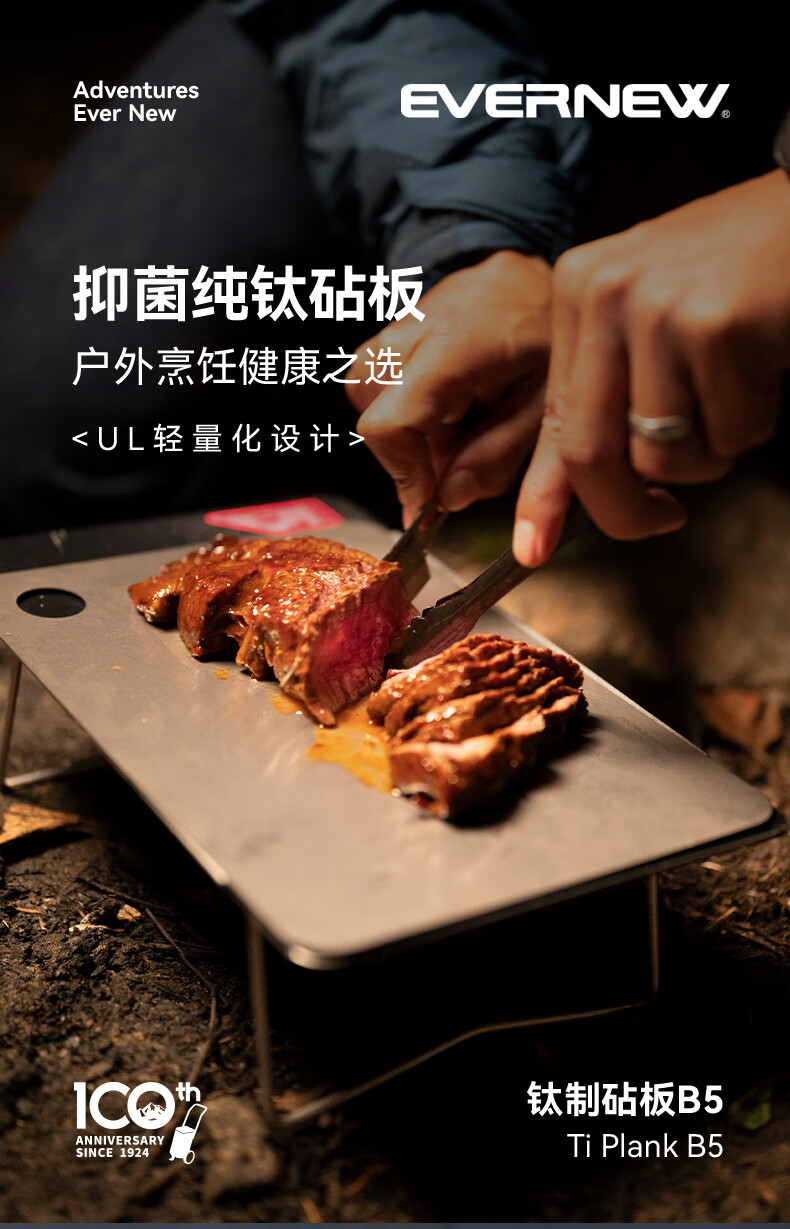 EVERNEW日本进口户外露营轻量纯钛砧板切菜板防霉抑菌案板 纯钛砧板