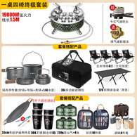 拓村户外炉具七星猛火炉分体卡式炉野炊便携露营装备全套一体烧水套装 【一桌四椅】终极套装果绿七星炉(多包裹发货)