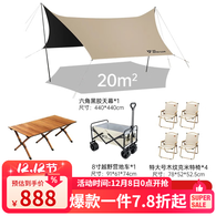 清系 黑胶天幕户外遮阳棚防雨加强防晒沙滩超大露营凉棚雨棚蝶形帐篷 20平方米精致露营全套