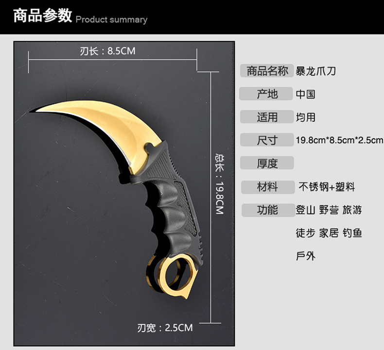 挺进者CS爪刀 CS爪子刀 游戏收藏CSGO真实爪刀 野营户外求生爪刀 蓝色