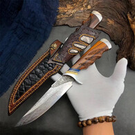 雨轩户外手工锻造大马士革VG10钢刀户外直刀砂铁木刀柄收藏送礼直刀