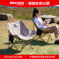 westfieldoutdoor户外折叠椅子露营装备便携式靠背月亮椅野餐野营休闲沙滩椅 【大号】卡其色
