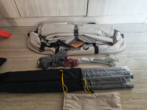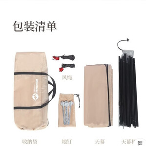 带独立包装手提袋,安装需要一点技巧,新手不要着急慢慢装。装备容易携带出门,我是朋友们一起露营买的,没有遮阳棚挨浇一身湿,防水效果可以