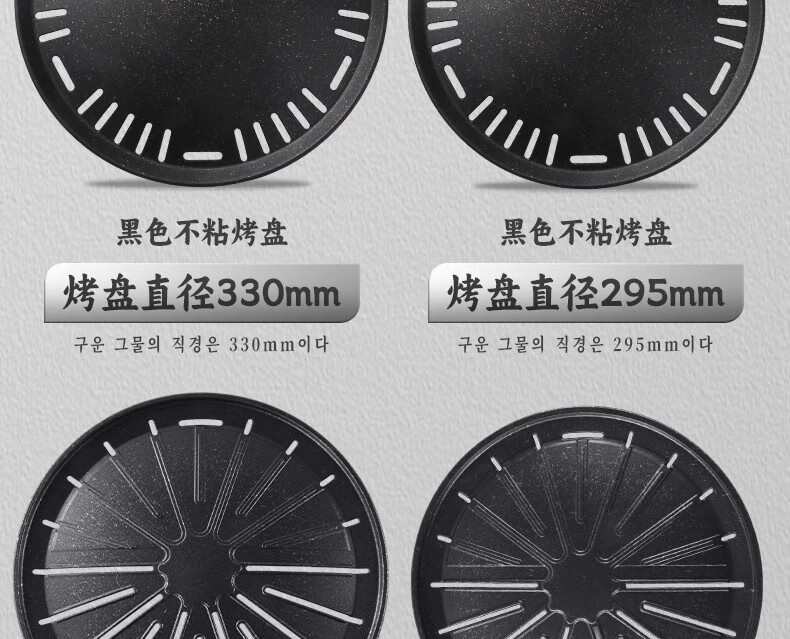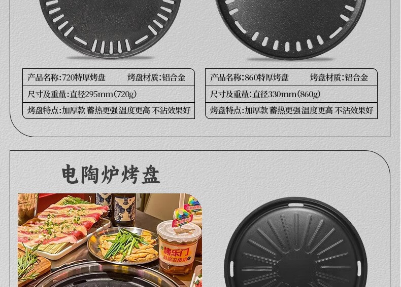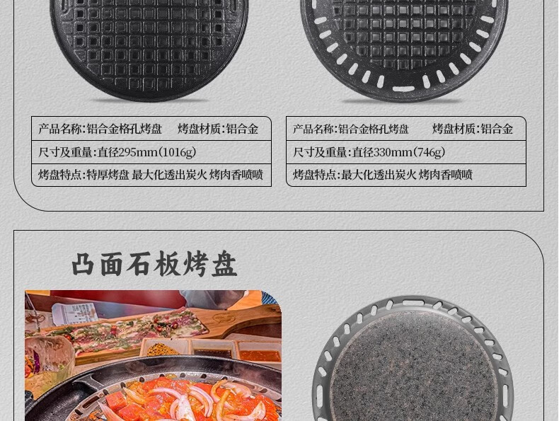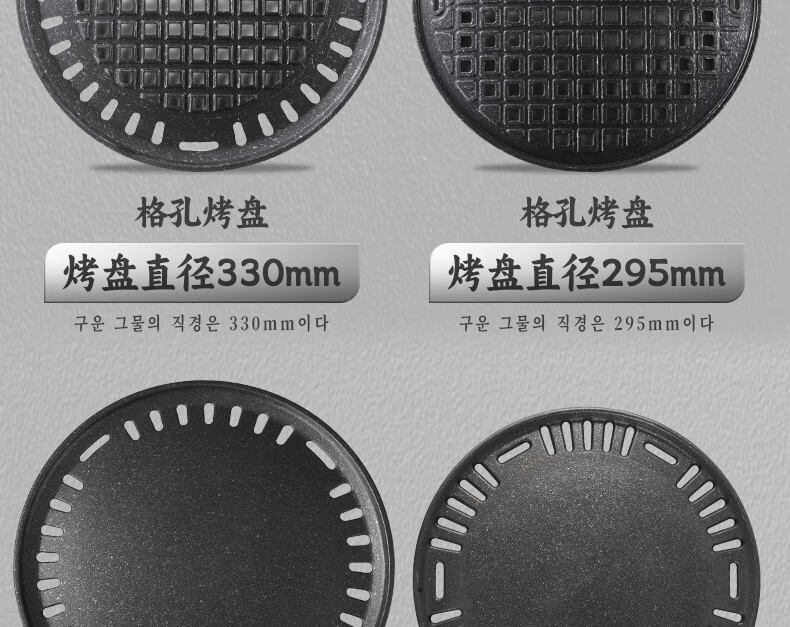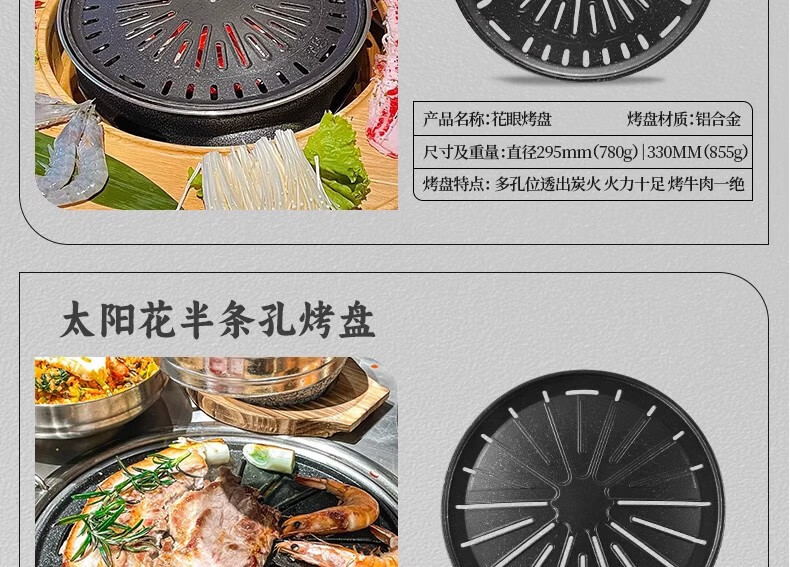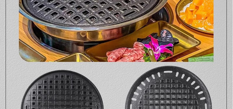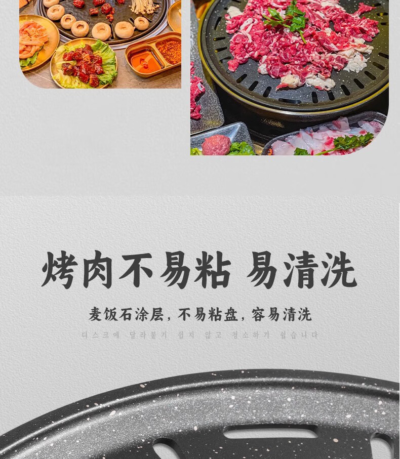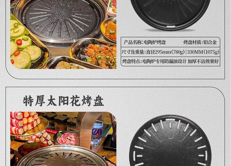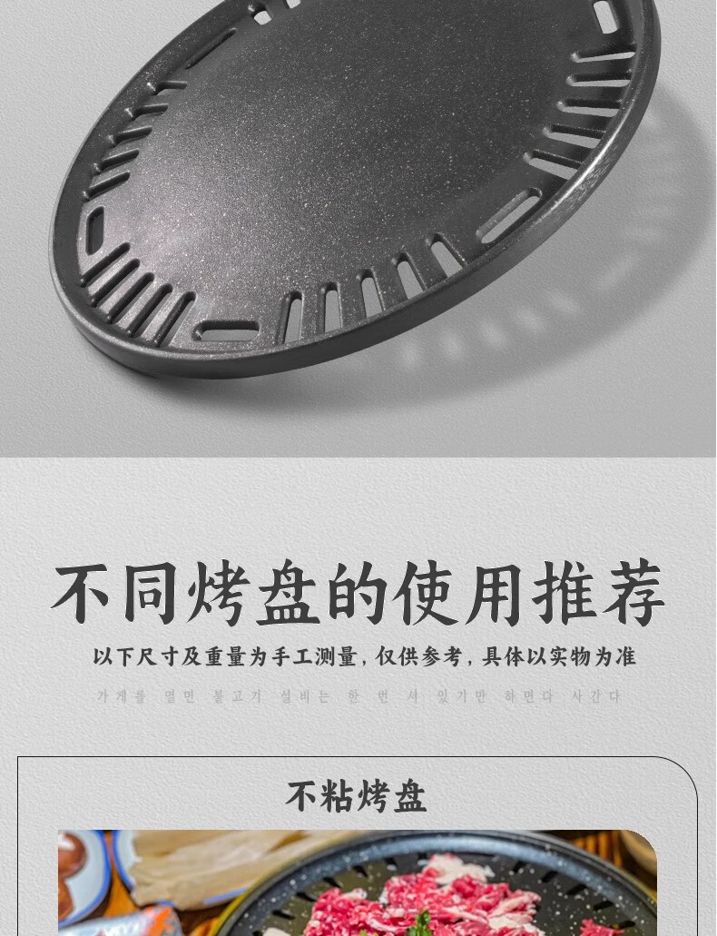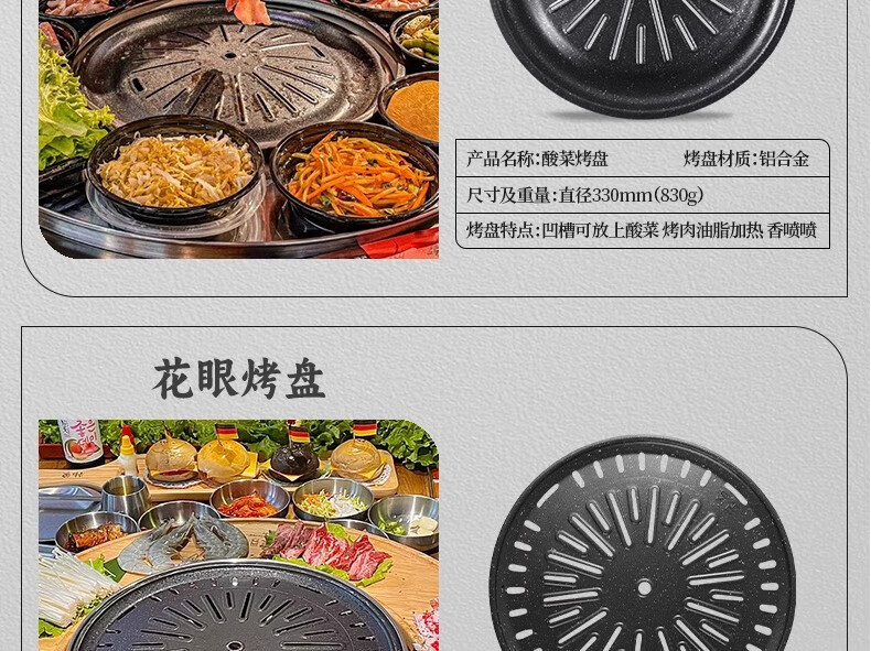 胤元韩式烧烤盘商用煎烤肉家用无烟铝合金碳火铁板烧木炭圆形烤肉盘 350#-电陶炉烤盘