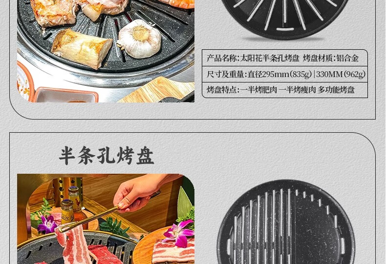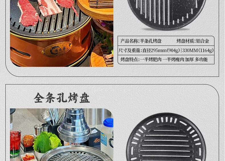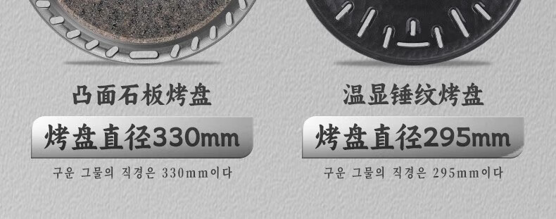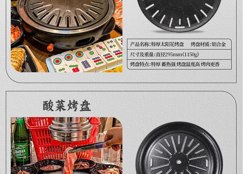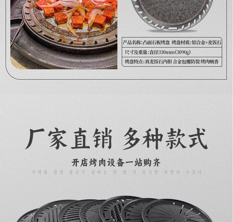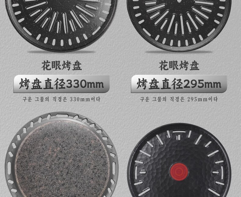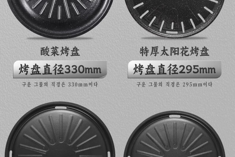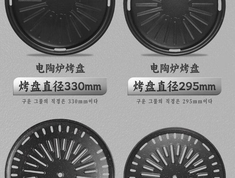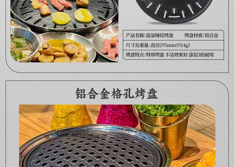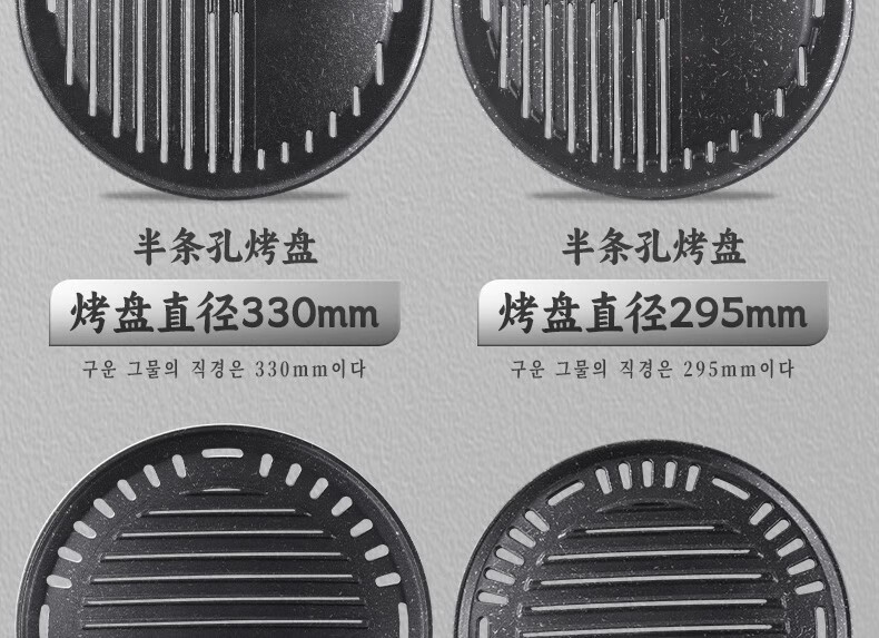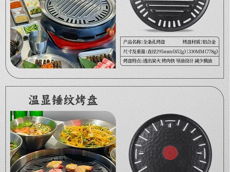 胤元韩式烧烤盘商用煎烤肉家用无烟铝合金碳火铁板烧木炭圆形烤肉盘 350#-电陶炉烤盘