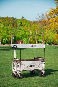 有了这款小推车出门露营既方便又轻松,这款小推车的质量和承重力都很好,轮子加宽在不平整的公园地段推着也很稳定,客服态度也很好,很有耐心,总之非常值得购买