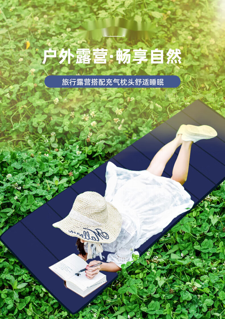 充气床垫露营单人家用充气睡觉睡垫打地铺午休折叠垫子便携户外防 特厚加宽款-90cm深蓝15mm-
