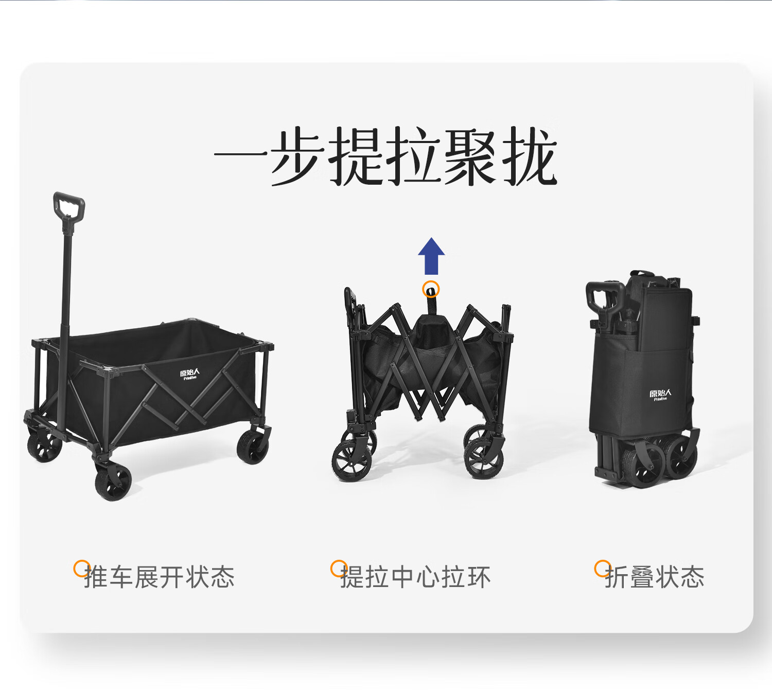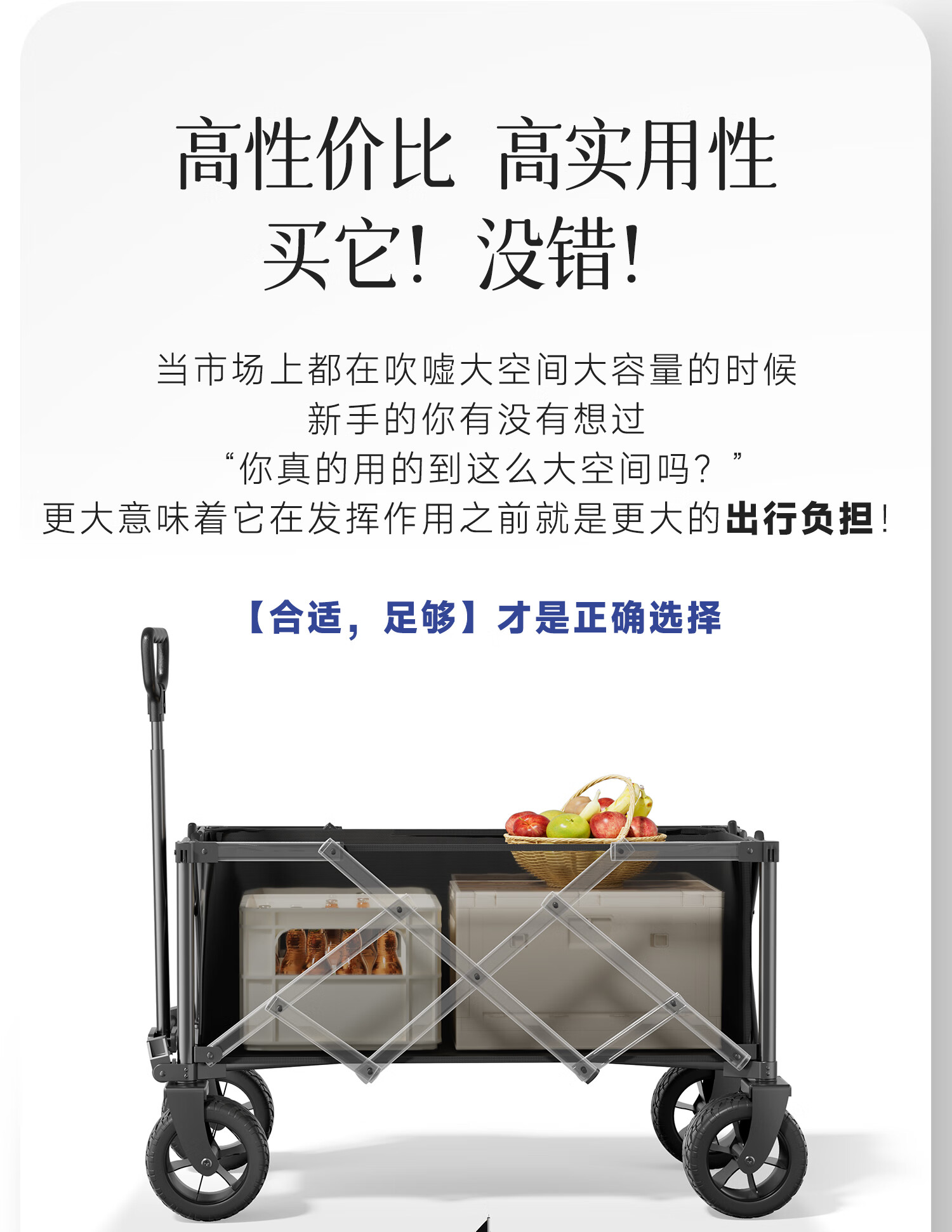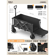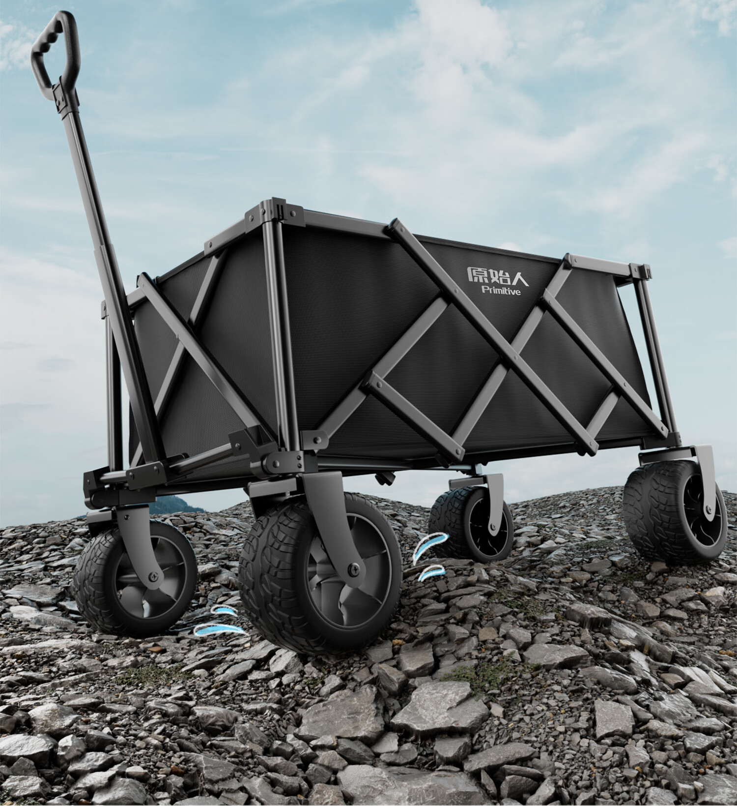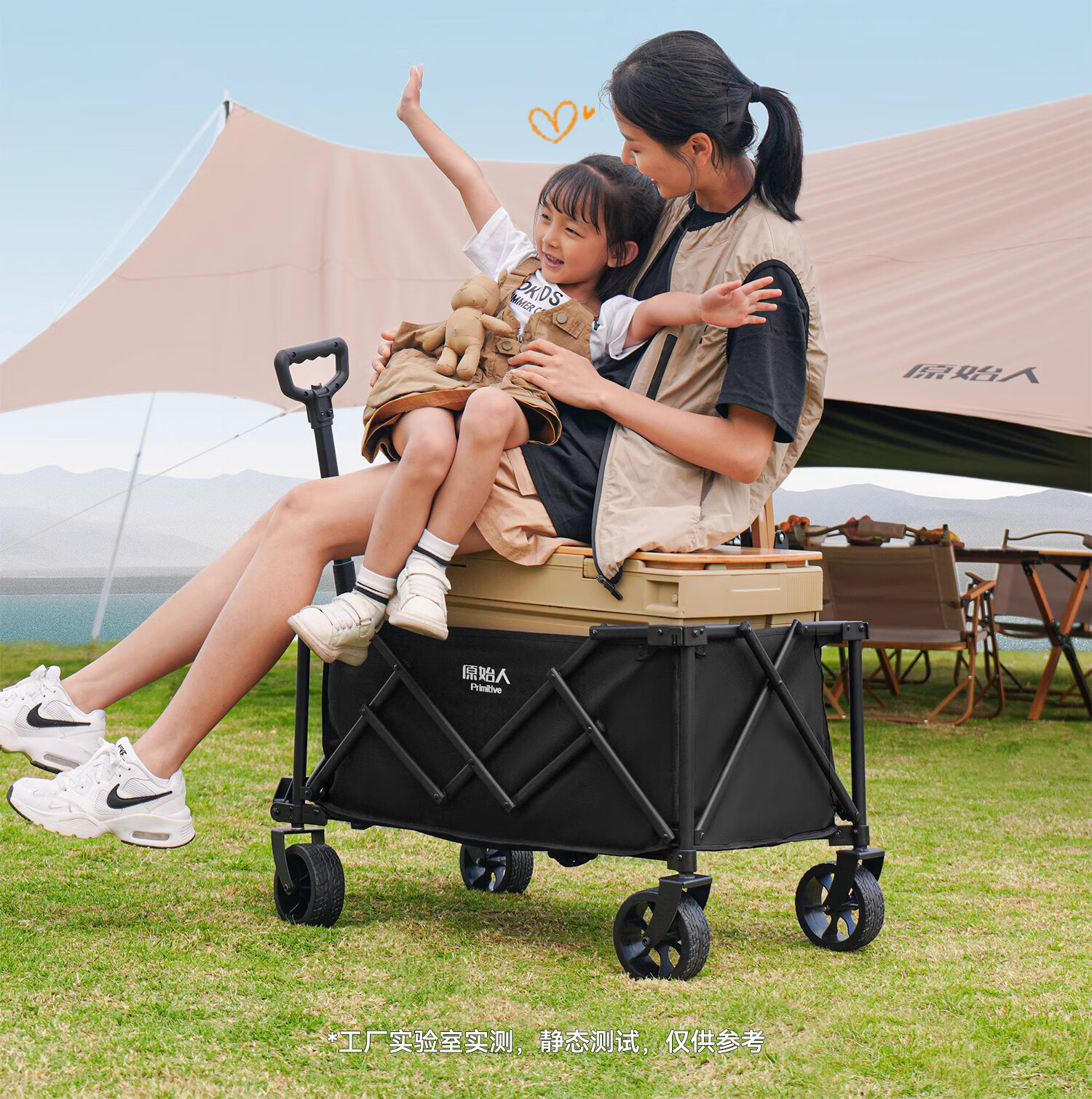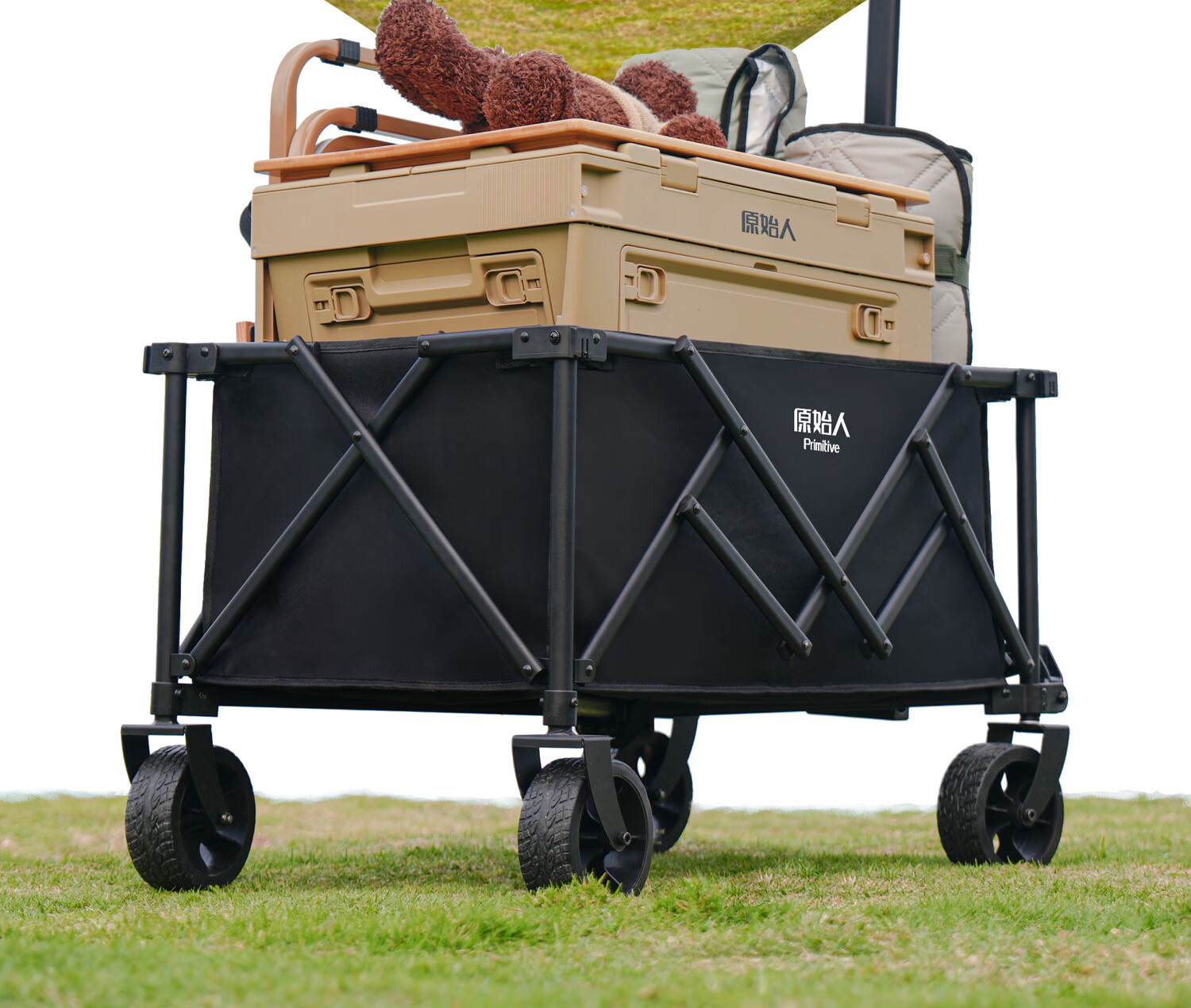 原始人露营车推车户外营地拖车大折叠手推野餐野营手拉车小拉车 180L 双刹车后开万向轮聚拢款-典雅黑