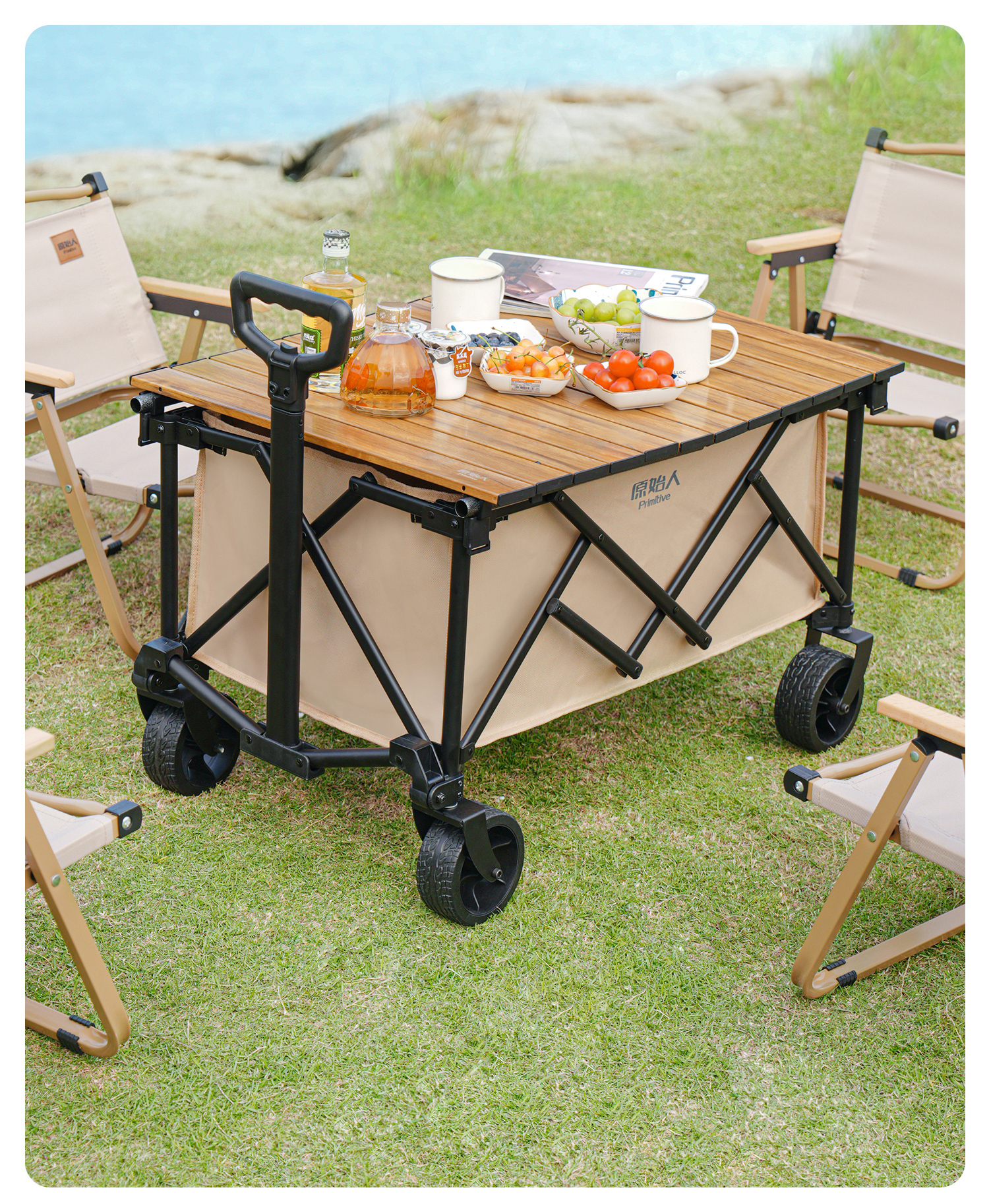 疆屿露营车野营户外折叠手推车野餐摆摊拖斗车儿童可躺超大聚拢营地车 卡其350L聚拢基础拖斗3秒收纳