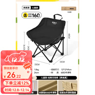 原始人儿童月亮椅户外折叠椅露营椅子桌椅沙滩椅便携躺椅钓鱼椅凳 儿童经典款黑色-绷带加固