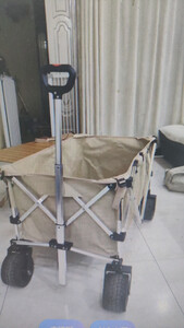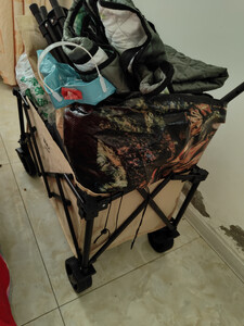 一开始买来主要是先搬家用的,容量挺大挺能装。折叠起来很方便,从中间一提就折叠了,折叠后占地方不大,但是重量不轻,因为车架是钢管材质,如果想重量轻的话,可以选择铝合金车架的,肯定会轻不少,那也意味着载重量也会下降,根据自己需求来选择吧。展开后车挺大,结实耐用,上去一个成人,稳稳当当的。四个轮子是宽胎的,挺实用,过个减速带很轻松。拉手能够自动回弹,这个挺好。拉手抽拉方式类似拉杆箱的,材质是硬塑料,这点不太好,拉重物的时候不敢太用力,怕拉断,需要后边有人推一把。总体来说挺好,毕竟价格不算高。