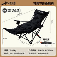 野徒者户外折叠椅躺椅子阳台午休便携家用户外钓鱼椅沙滩椅坐躺两用 耀夜黑【腿托可拆】加棉款 加宽86cm