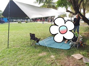 天幕颜色外观都很不错,3×4的尺寸一家三口露营基本够用,朋友聚会最好还是买大一号。材质稍微有点薄,不过黑胶的防晒效果确实要比涂银的要好,天幕下的光线稍显暗。