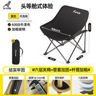 Aoran 户外月亮椅折叠椅便携露营躺椅野外沙滩椅写生折叠凳休闲钓鱼椅 【承重300斤】加粗钢管+曜石黑