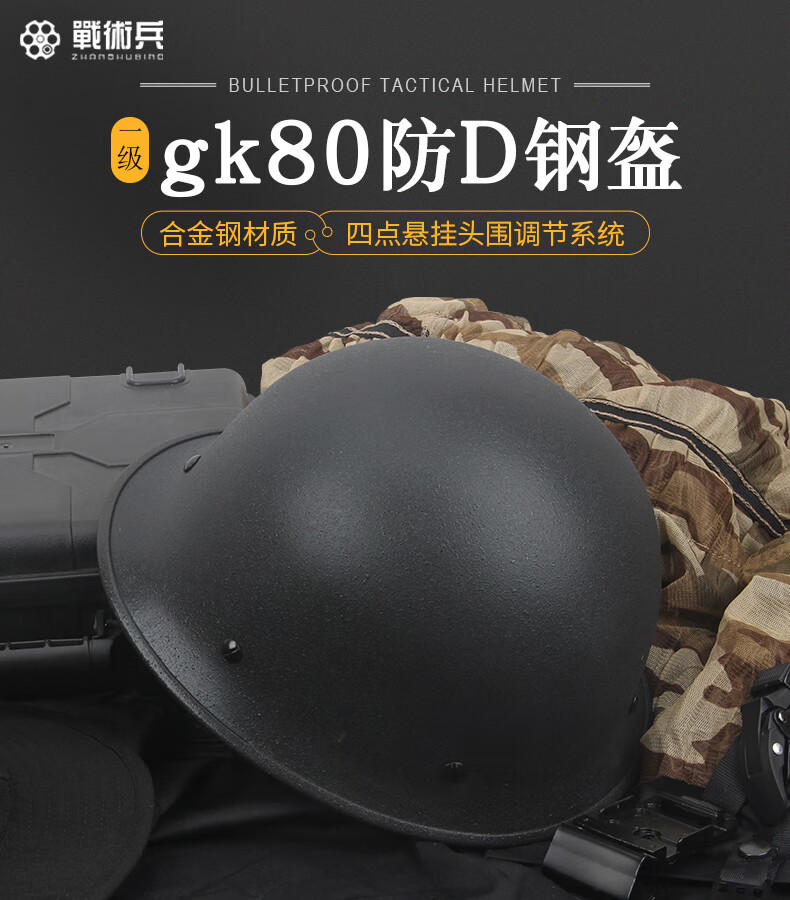 战术兵gk80防弹钢盔GA一级 钢铁合金钢防暴安保安防盔训练押运头盔 A套餐(头盔+盔罩)颜色备注