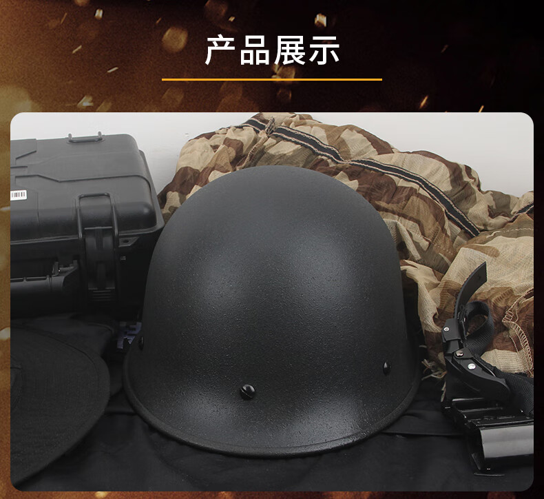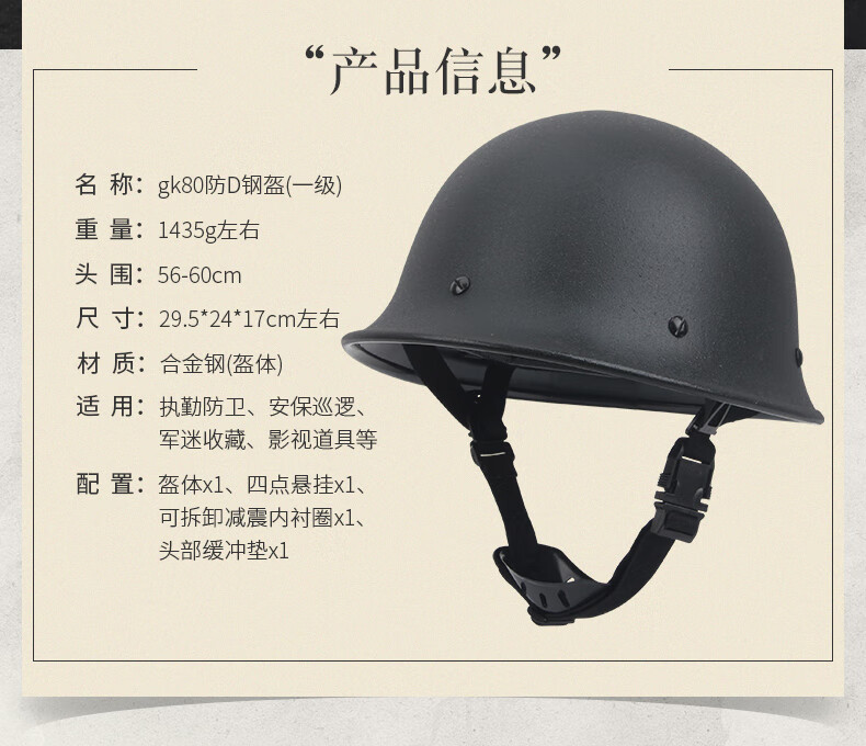 战术兵 80钢盔军迷保安训练头盔 防砸防暴头盔 经典收藏影视道具1.2kg 钢盔+粗盔网【】