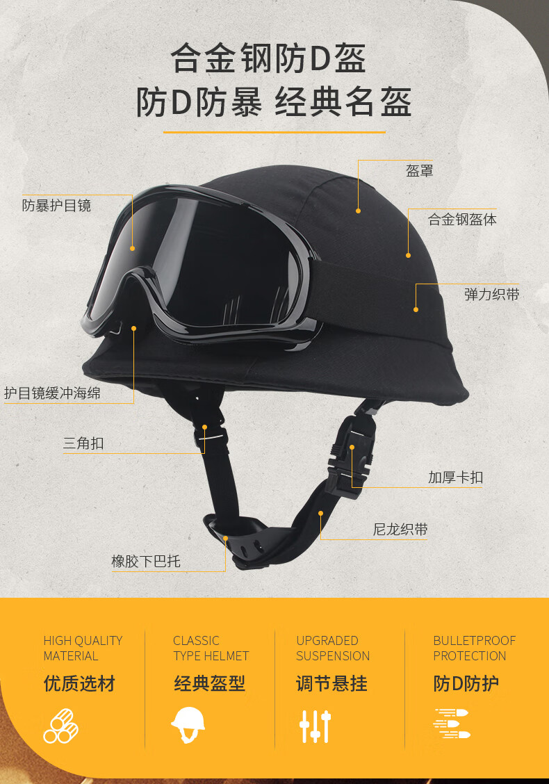 非常好的头盔,和商家描述一样,拿在手里很沉才质合金制造,绝对和警察用的同样