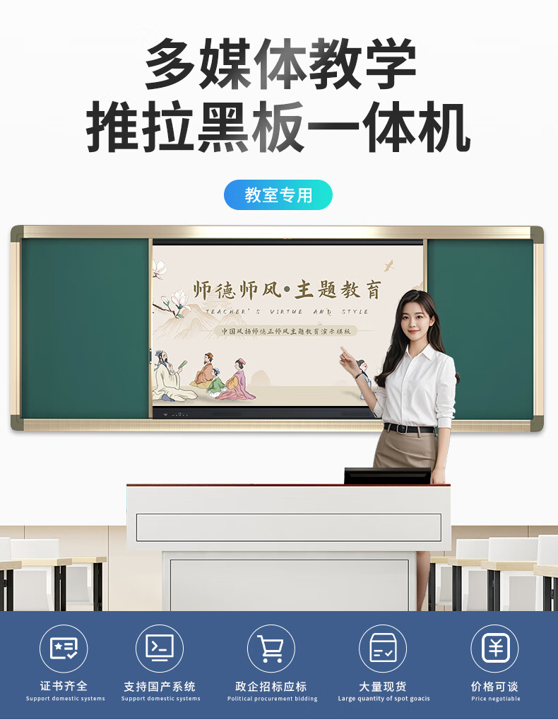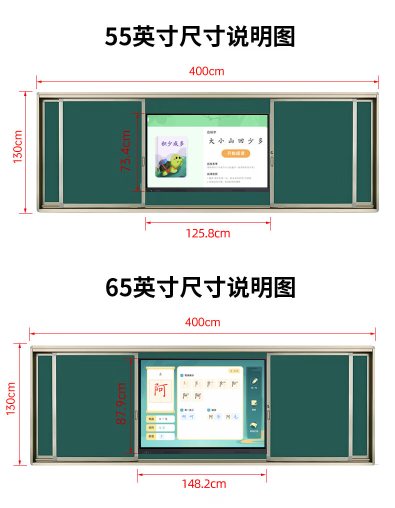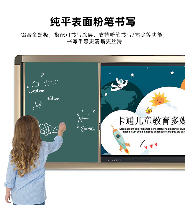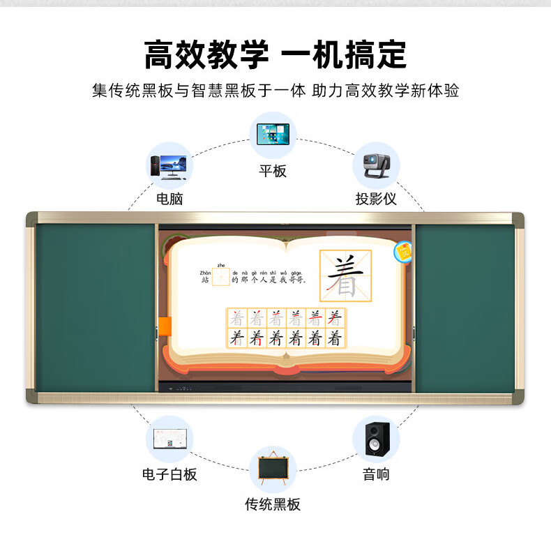 一体机*1,推拉绿板*2,电源线*1,触摸笔*1,合格证/保修卡*1,说明书*1