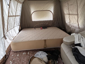 带着孩子出去露营,骨架拉伸就可以把内帐搭建起来,屋脊13空间足够能够搭建2个充气床在里面,很方便。 几个小建议,如果所有的天幕都要支撑拉开,至少需要7根天幕杆,但是原配只有3根只够门厅立起来的,还需要配置其他的4根才可以完成,既然都已经叫旗舰版了就已经代表最高水平了,这个最好配置拉满,毕竟钢的支撑杆也没几个钱何况还只是一米九而已,免得客户自己去弄。