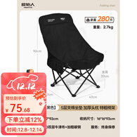 原始人(The Primitive)户外折叠椅月亮椅加高露营椅子钓鱼凳便携式躺椅午休沙滩椅野餐 舒适大靠背椅【舒适头枕】曜黑