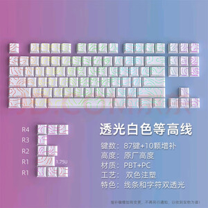 火矛机械键盘键帽个性化定制 pbt键帽侧刻透光原厂高度 渐变等高线爱心高颜值键帽68/75/87/98/108 《腮红》侧刻键帽136颗