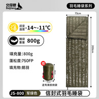 北极狼(BeiJiLang)羽毛绒睡袋轻量化鹅毛绒成人户外露营旅行便携式车载用午休被子 800g【军绿色】【高蓬松鹅毛绒】-14~-11℃