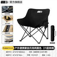 探险者(TAN XIAN ZHE)户外折叠椅露营椅子便携钓鱼凳子休闲月亮椅凳沙难椅野餐桌椅 【豪华款六层】黑色+管套加固